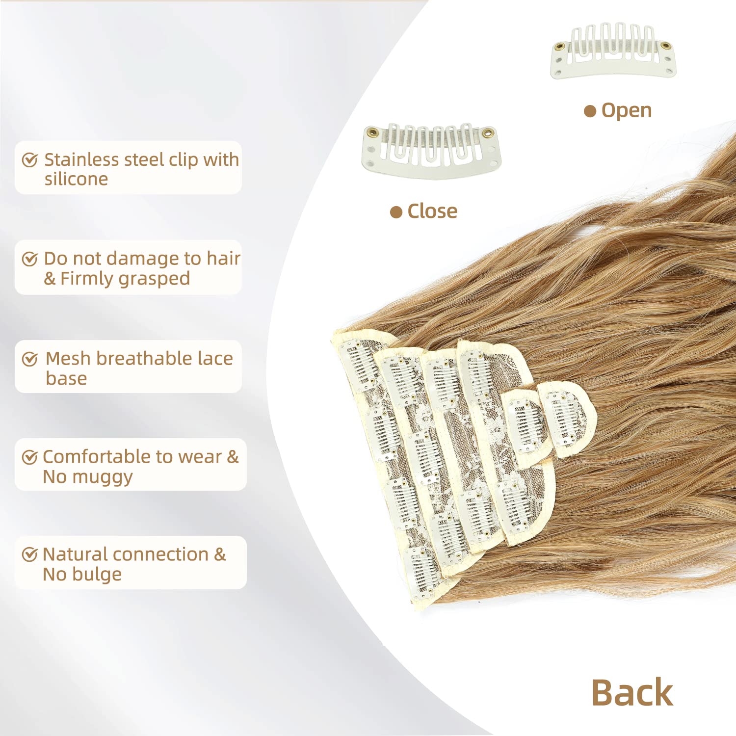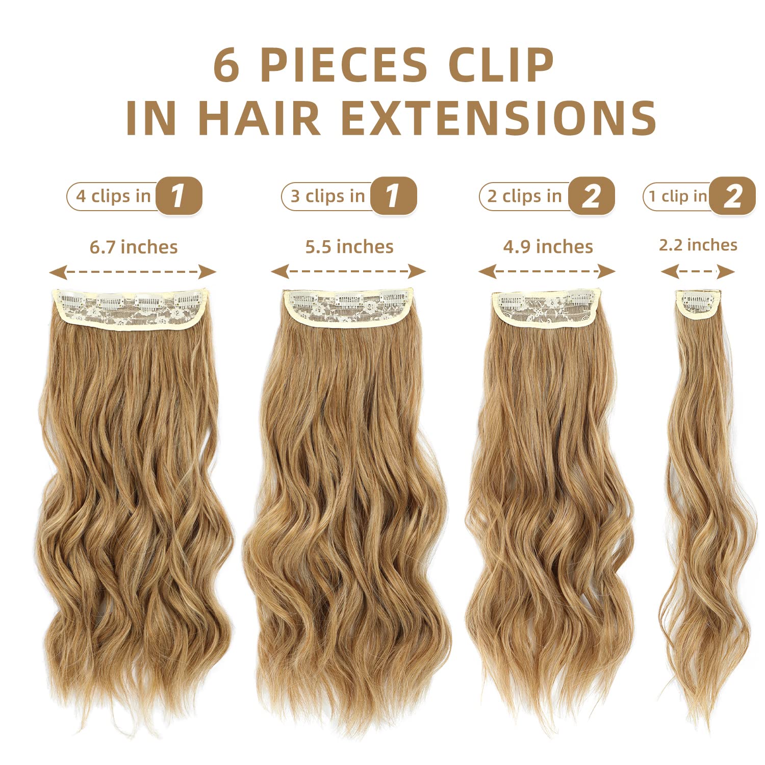 Fliace Clip in Hair Extensions, 6 PCS Natural & Soft Hair & Blends Well Hair Extensions, Lonng Wavy Hairpieces(20inch, 6pcs,Biscuit Brown)