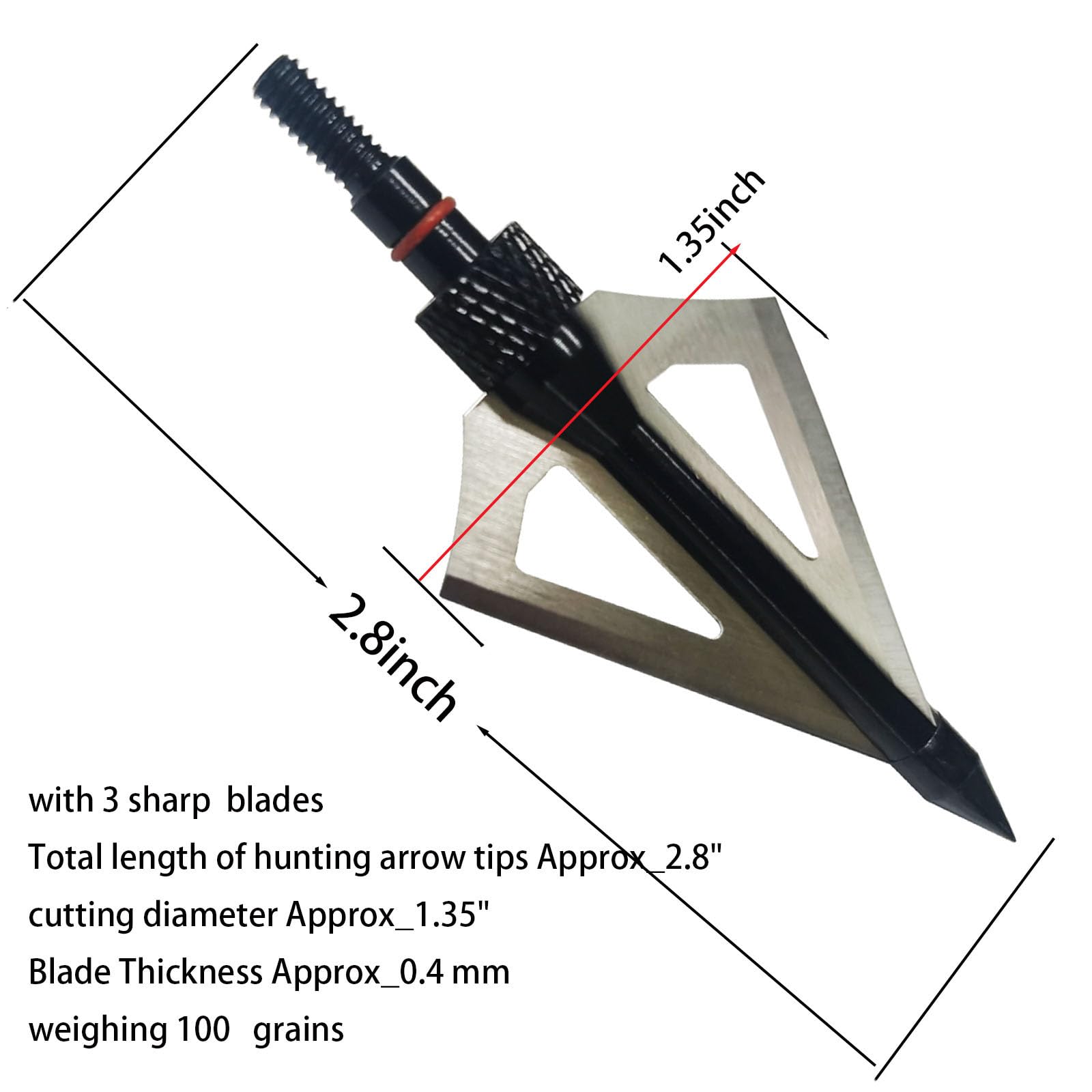 - 【SHARP ARROW TIPS】with 3 sharp blades Total length of hunting arrow tips Approx_2.1' cutting diameter Approx_1'Blade Thickness Approx_0.7 mm weighing 100 grain