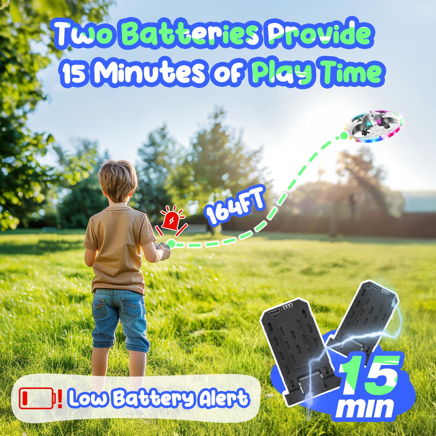 - Dual Batteries for Extended Flight Time: Includes 2 rechargeable 3.7V 800mAh Li-polymer batteries, providing up to 15 minutes of combined flight time. A flashing light alert system notifies you when the battery is low, helping prevent unexpected drops or loss.