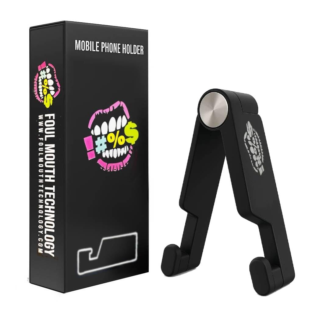 Foul Mouth Technology Folding Cell Phone Stand, Adjustable Foldable Desktop Phone Holder, Portable, Compatible with All Phones