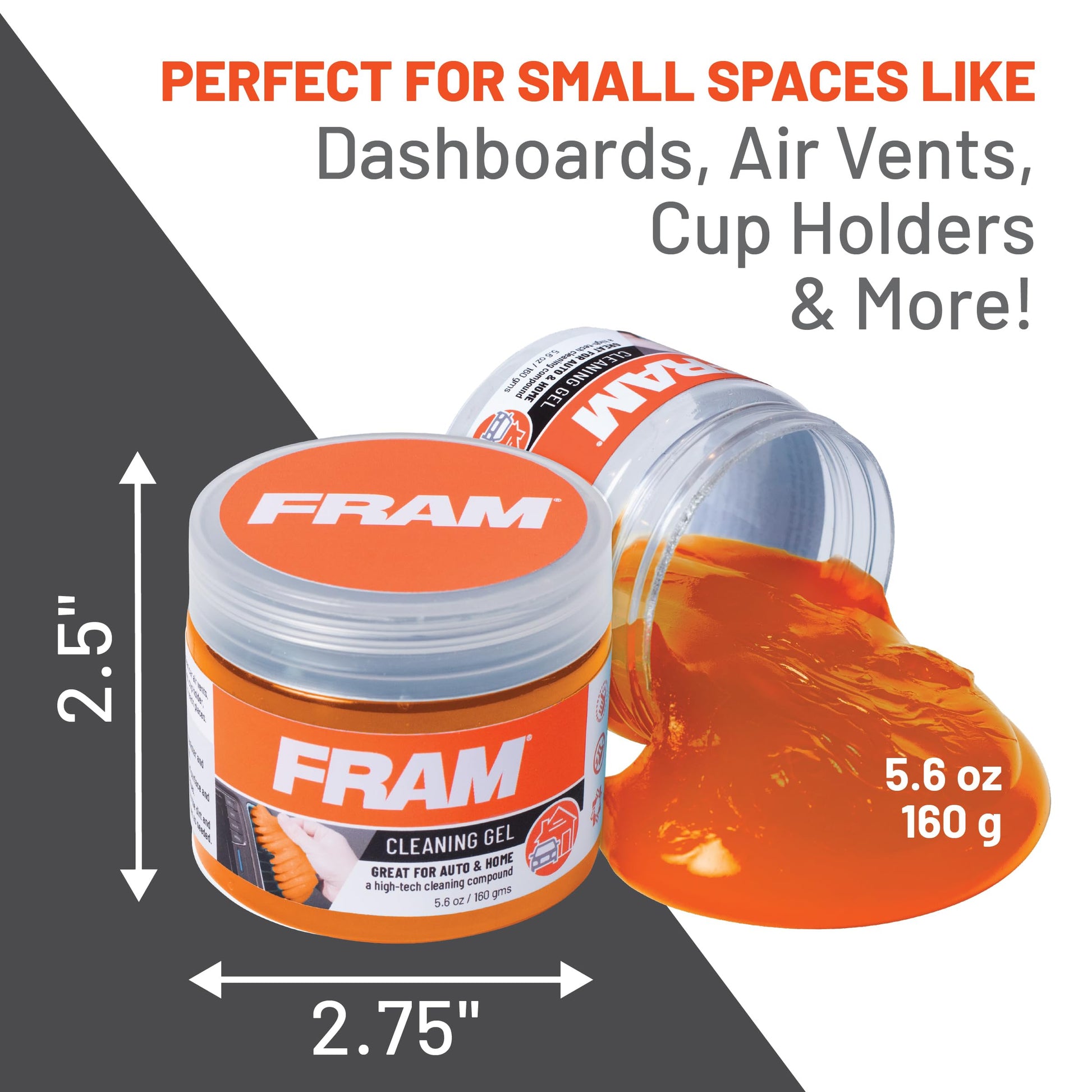 - MULTIPLE USE: The FRAM Car Cleaning Gel can not only clean car dust but can also be used for home and office cleaning. It works well in cleaning car interiors, keyboards, various household appliances and office items such as car vents, steering wheels, dashboards, computer/laptop keyboards and mice, cell phones, printers, air conditioners, tvs, and other furniture.