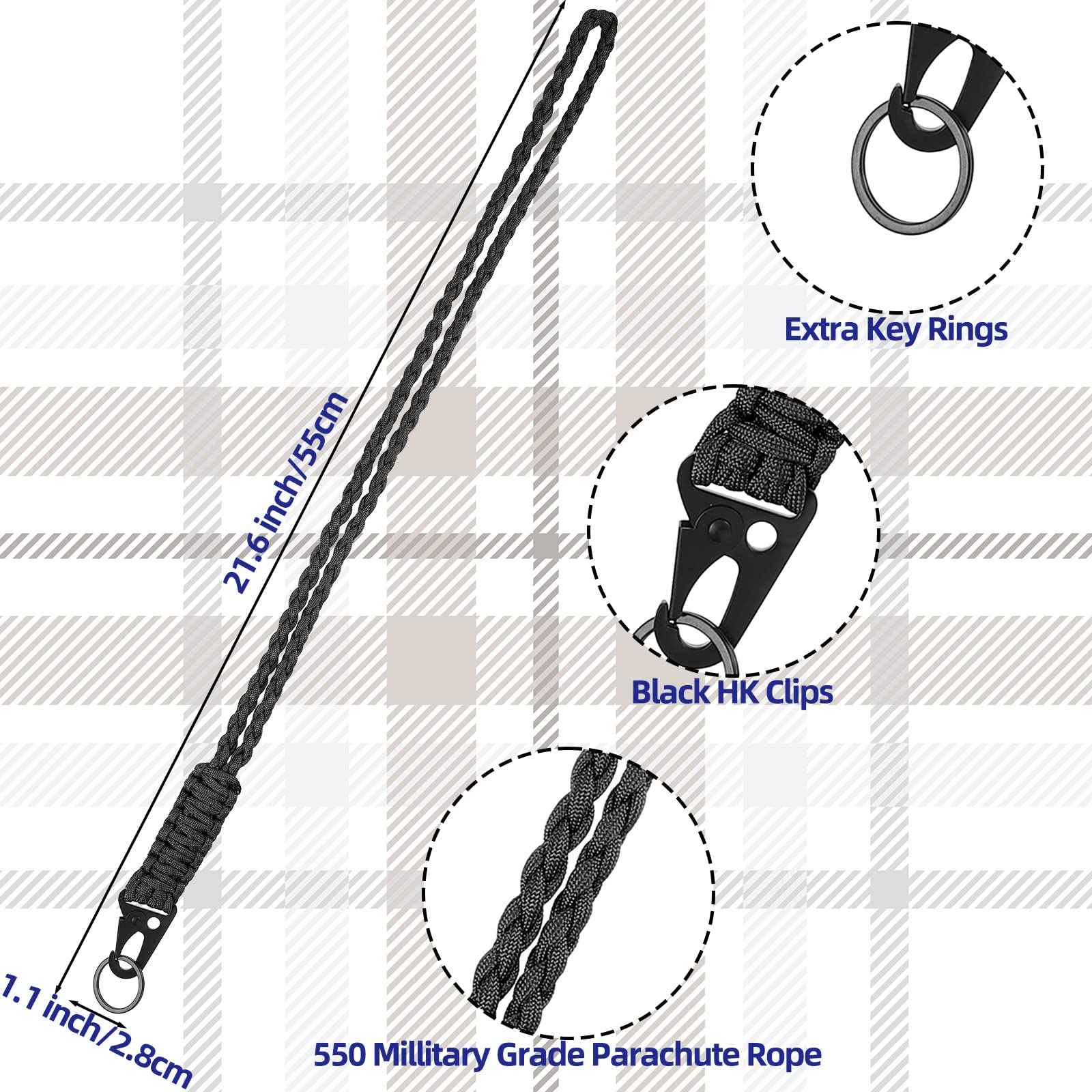 - Package includes: you will get 2 pieces of heavy duty paracord lanyards in 2 colors, black and blue, 1 pieces for each color; Sufficient quantity can meet your different use and replacement, suitable for a variety of outdoor activities