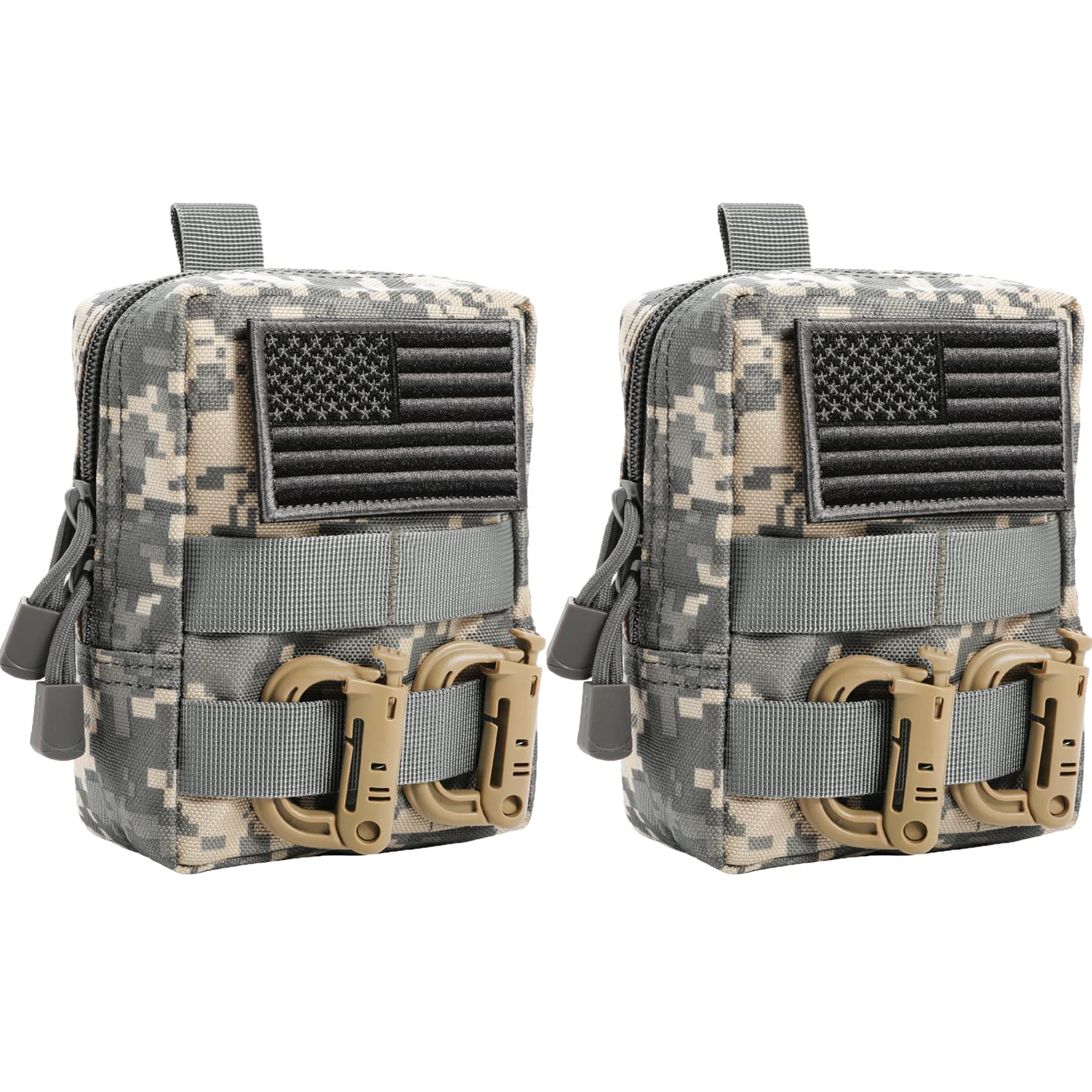 FRTKK 2 Pack Molle Pouches - Tactical Compact Water-Resistant EDC Pouch Small Utility Pouch Bags (Patch Included) (2 Pack-ACU)