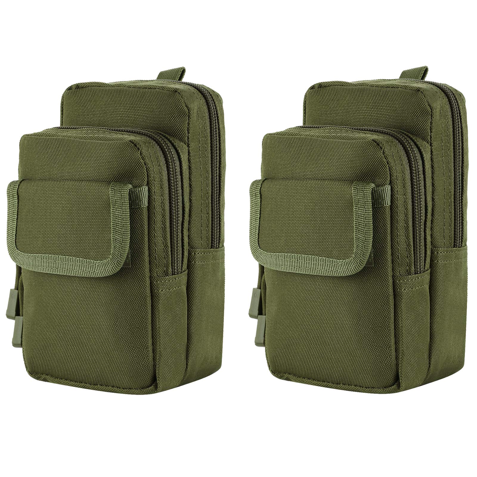 FRTKK 2 Pack Molle Pouches - Tactical Compact Water-Resistant EDC Pouch Small Utility Pouch Bags (Patch Included) (2 Pack-Army Green 2)