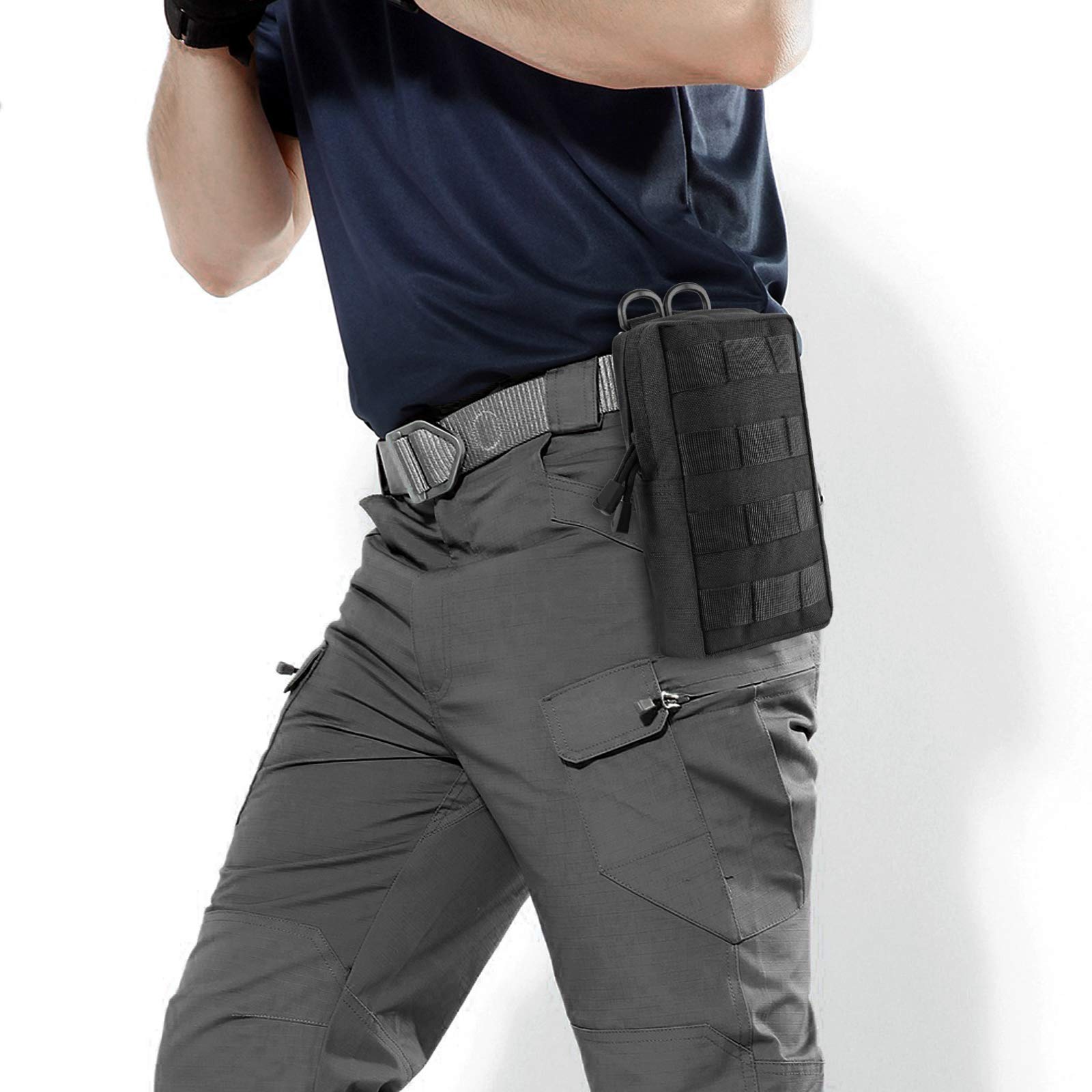 FRTKK 2 Pack Molle Pouches - Tactical Compact Water-Resistant EDC Pouch Small Utility Pouch Bags (Patch Included) (2 Pack-Black 3)