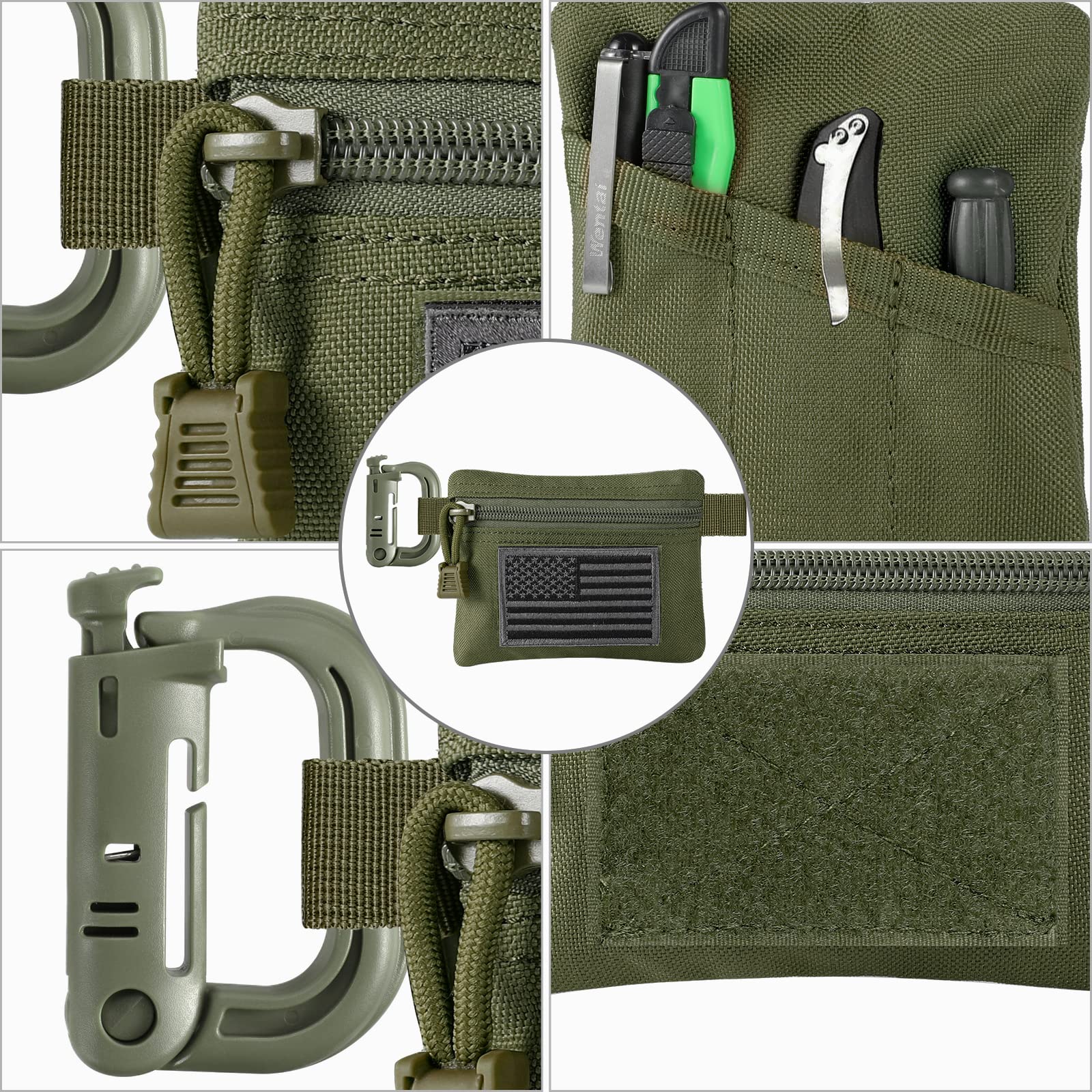 FRTKK 2 Pack Tactical Compact EDC Pouches, Military Molle Utility Pouch Organizer Pouch, Coin Purse Keychain Pocket Credit Card Holder Waist Pack (Army Green 3)