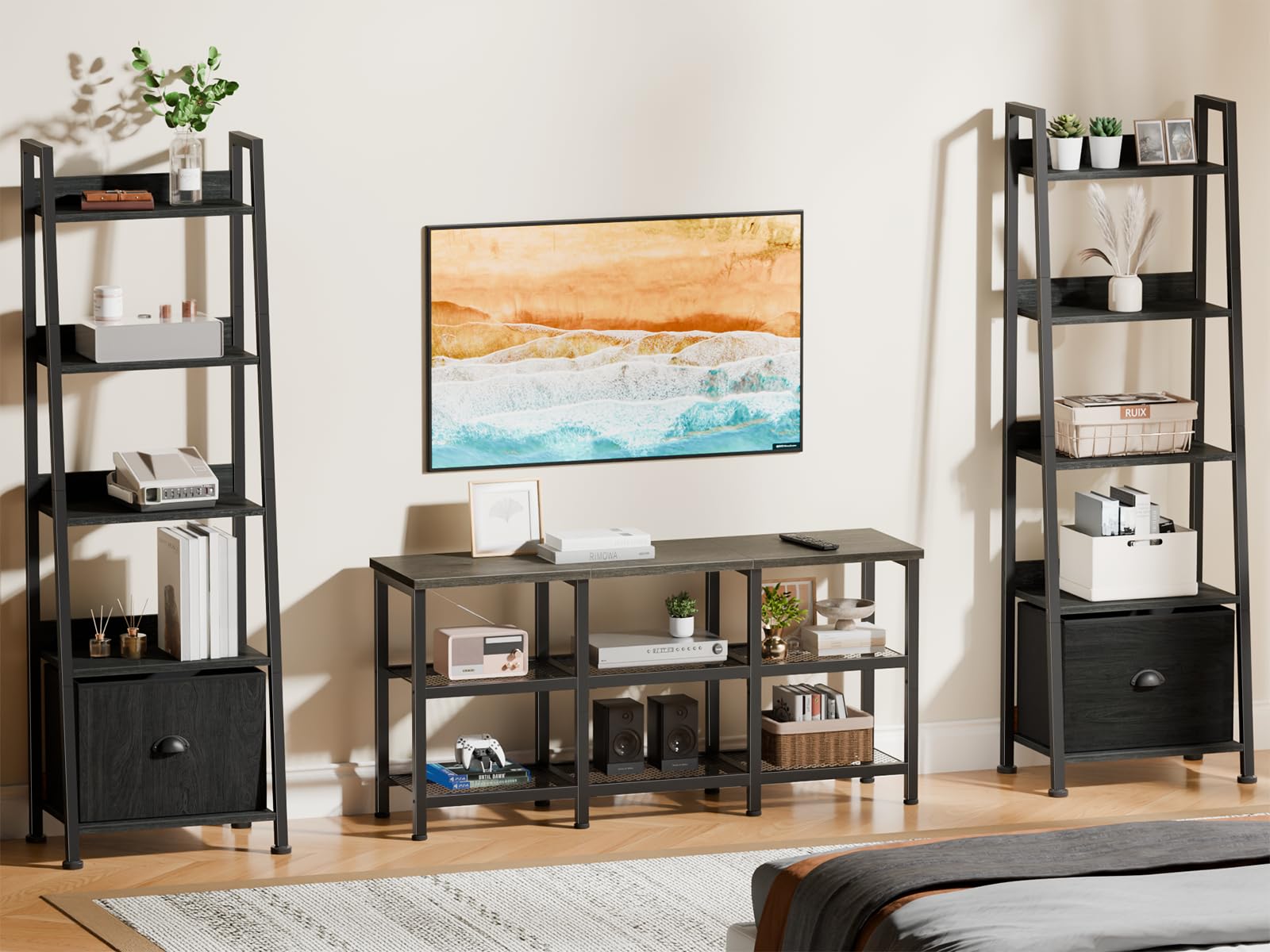 - 3-tier Shelves Entertainment Center: This TV console table is designed with 3 tiers storage shelves, can store DVDs, speakers, remote controls, and books, which perfectly meet your needs, keep your room neat and clean.