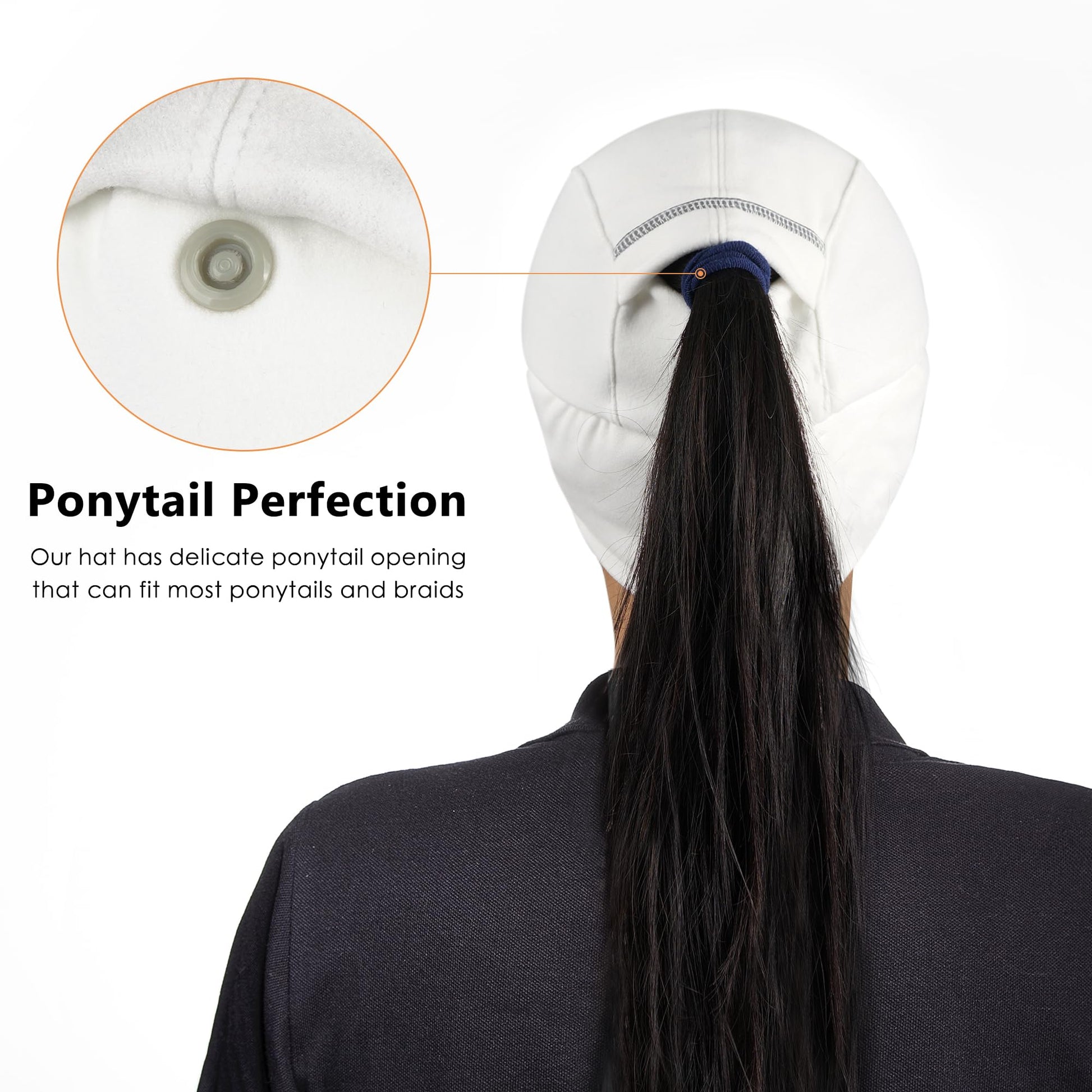 - Ponytail Compatible: The subtle ponytail opening accommodates most ponytails or braids, does work best for high ponytails. If you don't tie a ponytail, you can snap the button inside for better warmth, and it features reflective stitching for enhanced visibility in low light situations