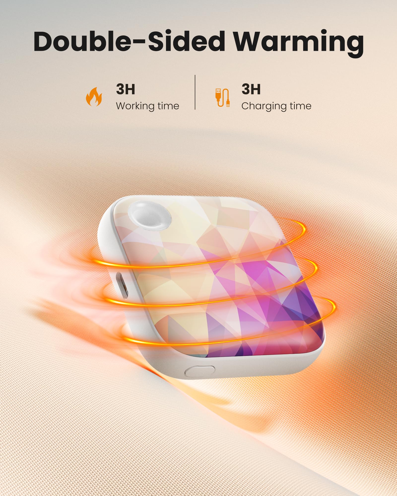 - All-around Warming Up Quickly: The hand warmers heat up double sides quickly and keep your hands and fingers warm; The heating temperature can reach 122-131°F in seconds after the portable hand warmer is powered on