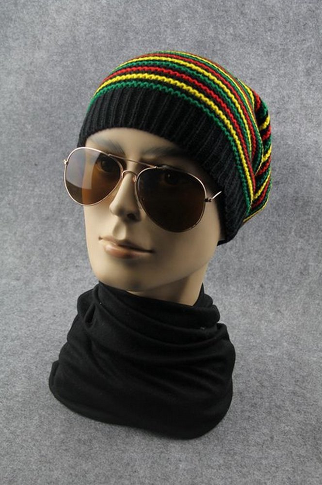 ganesha Unisex Jamaica Reggae Rainbow Stripes Oversized Slouch Winter Beanie Hat