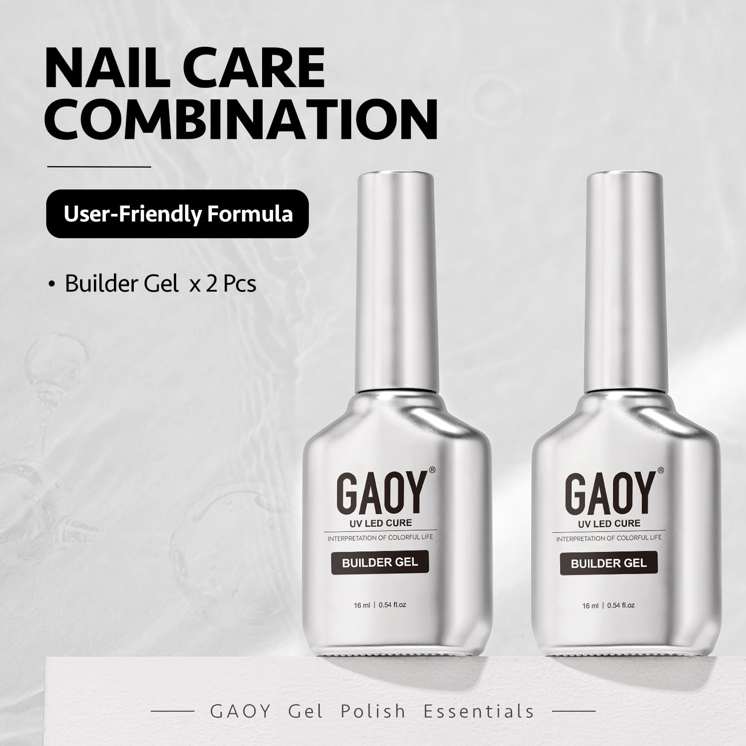 GAOY 2 Pcs 16ml Clear Builder Gel for Nails, Nail Strengthener in a Bottle, Nail Extension Hard Gel, Soak Off Long Lasting UV Gel, Base Coat Top Coat Needed