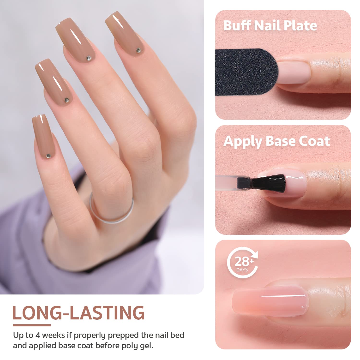 - Long-Lasting: Last around 4 weeks if properly prepped the nail bed and applied base coat under poly gel.