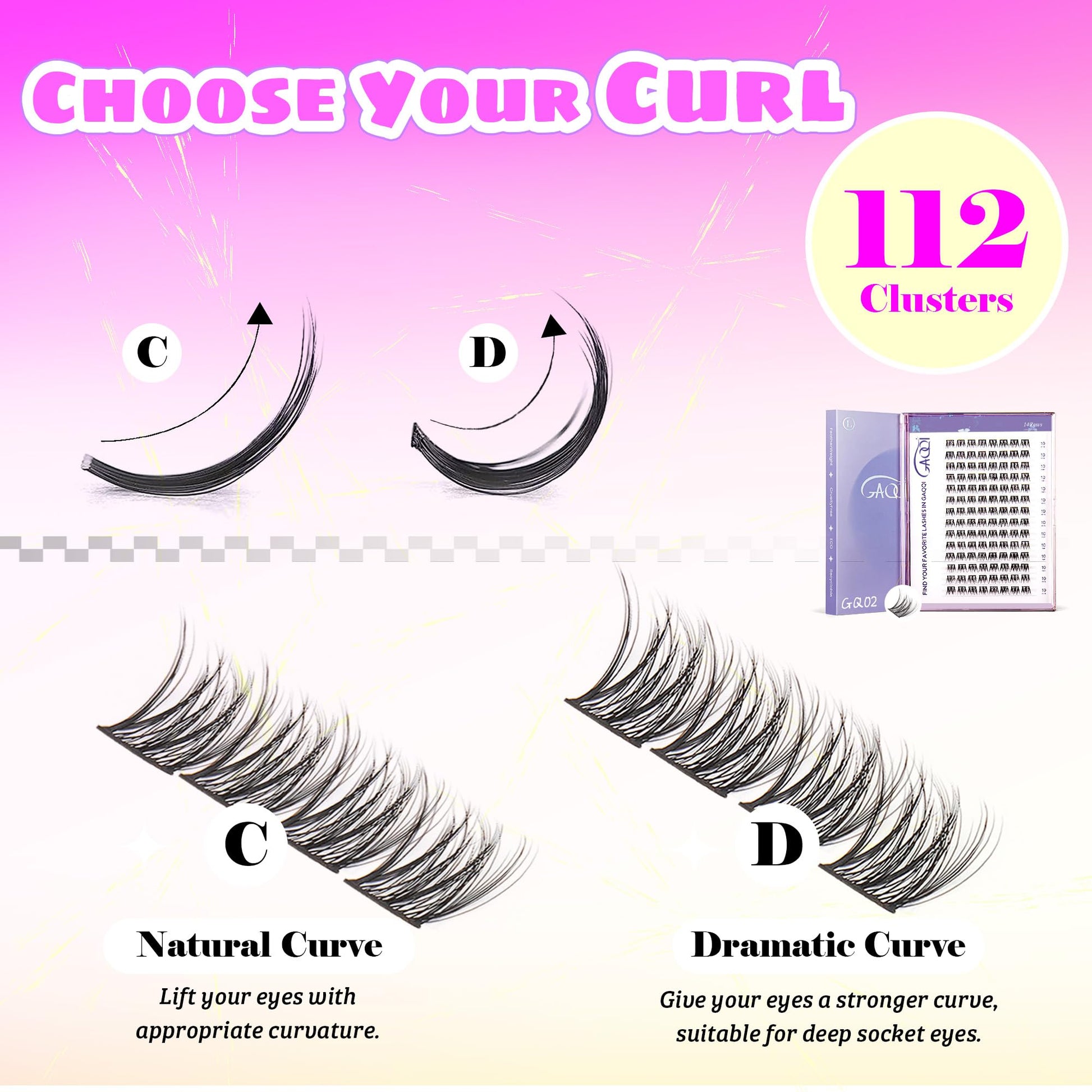 - 【A Perfect DIY lash Extension】GAQQI cluster lashes are thoughtfully designed to create a natural and charming appearance. With 10-16 different lengths and C/D curl, you could create any style you want at home, such as cat eye, foxey eye, open eye, dool eye, and wispy natural look.