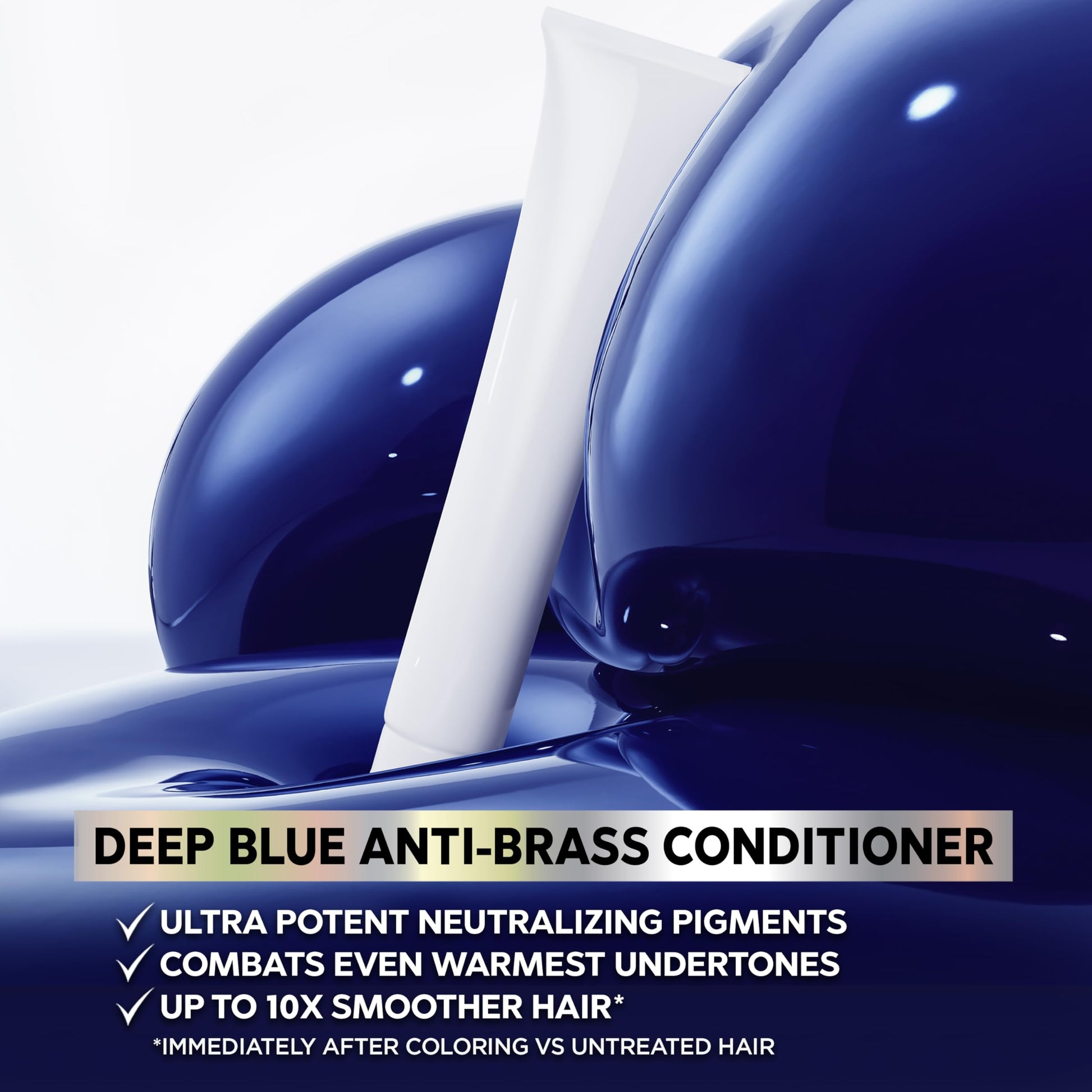 - New Deep Blue Anti-Brass Conditioner: This hair color kit includes a nourishing, toning anti-brass Conditioner with ultra potent dark blue pigments that help neutralize even the warmest undertones for a perfectly toned caramel result