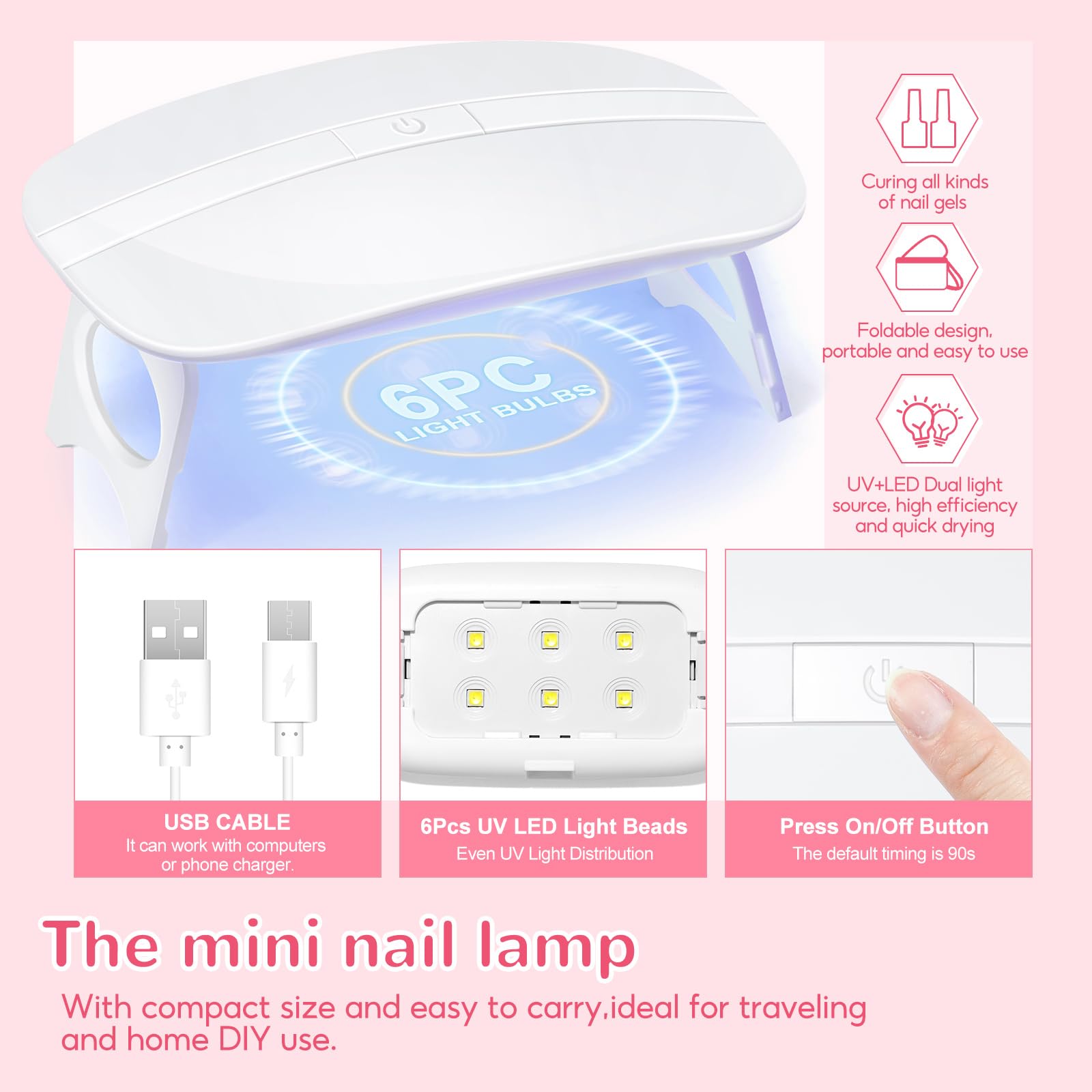 - U V/LED Nail Lamp: The nail lamp is small and exquisite, portable, dual light source U V LED beads, quick dry. easy to apply. Whether you are doing manicures at home or at a party, it is a great choice. This mini nail lamp is suitable for all kinds of gel, such as gel nail polish gel, poly nail gel, u v gel.