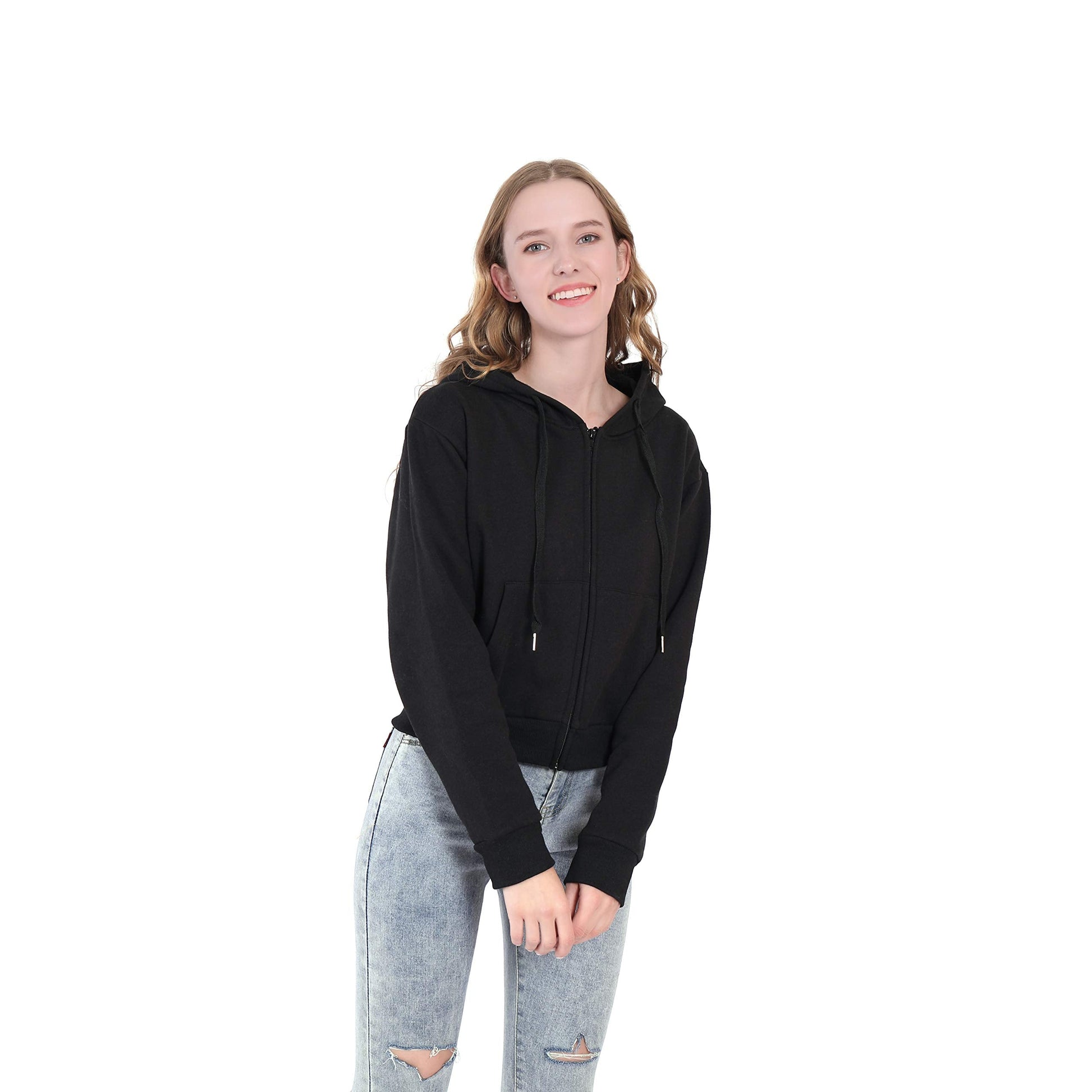 Germinate Huang Cropped Zip Up Hoodie Women Zipper Aesthetic White Black Crop Short Sweatshirt Jacket Teen Girls Oversized (US, Alpha, Large, Regular, Regular, Black)