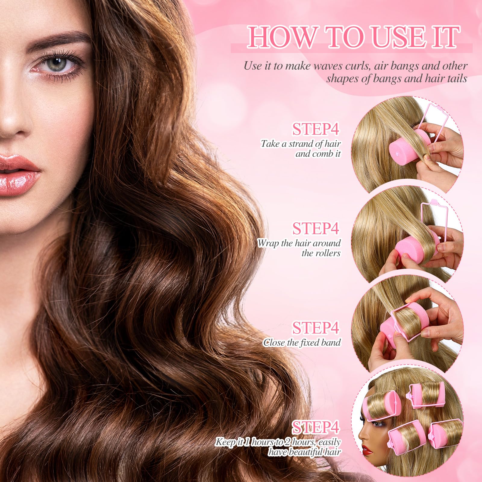 - Note: this product is vacuum packed; It is recommended to leave it for 3 days before use to restore it to a round shape; And easy to use rollers grip the hair without the need for pins and clips; Just open the plastic fixed band wrap your hair on the roller, close the fixed band, go to sleep; Wake up you can get a beautiful curls