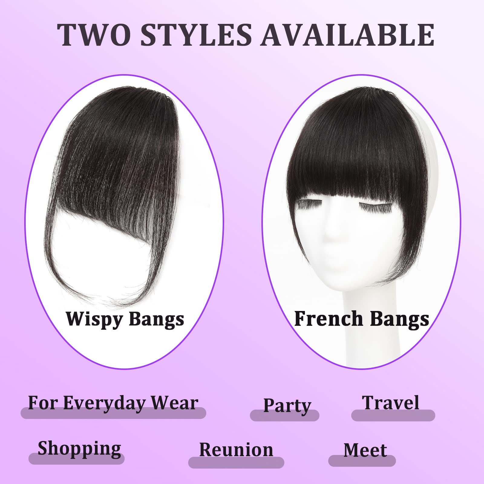- 【Various Bangs Style】French Bangs & Air bangs,No matter what face shape you have, there is always one that suits you