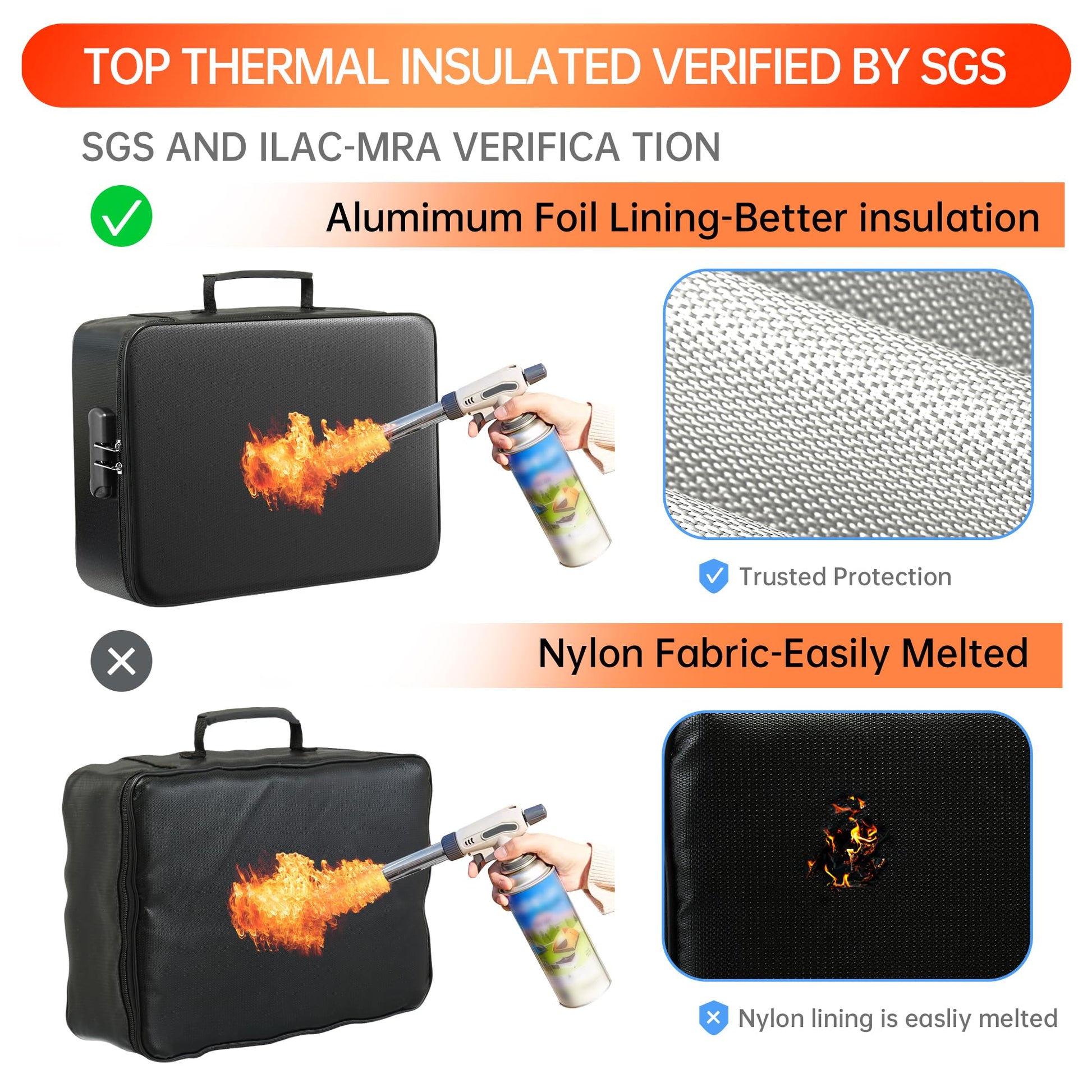 - 【Innovative Humanized Design】Design with a strong handle for carrying everything you needed easily.Not only can you put it in your home, office, car,storage cabinet, you can also take it to camping, travel and various outdoor activities. Of course, giving it as a Christmas gift to your family, customers or employees is also a good choice.The newly designed fireproof bag is lighter,easier to carry than a fireproof safe, and easy to fold,it may fit both letter and legal-size files/paperwork.