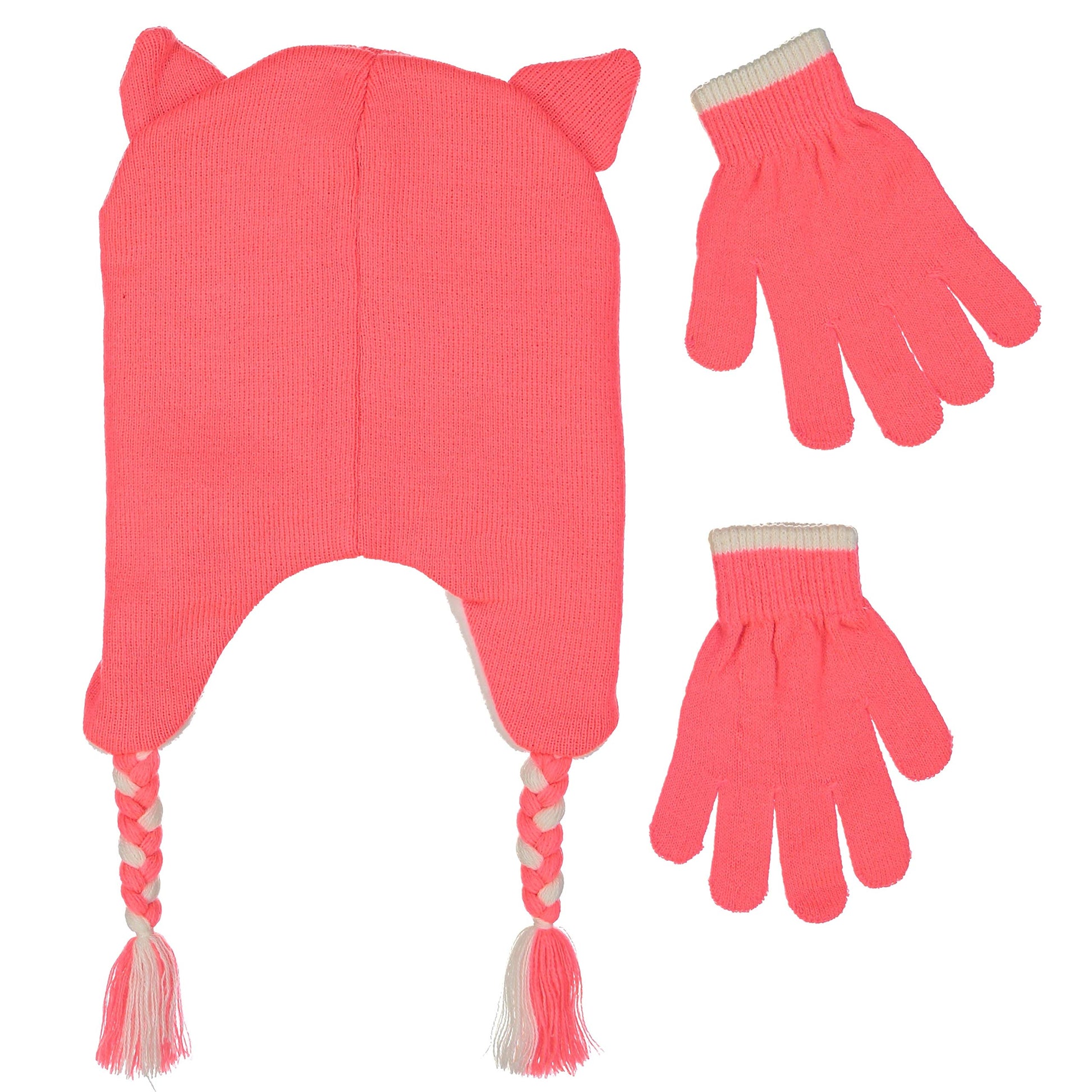 Girls Knitted Animal Beanie Winter Hat and Glove Set [4015] (Fox Hat)