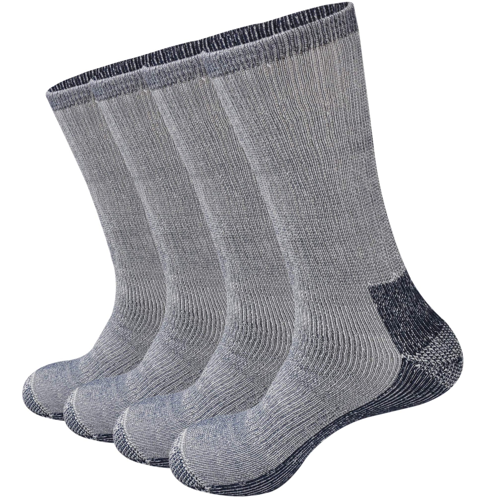 GKX Men's Merino Wool Moisture Wicking Themal Outdoor Hiking Work Boot Heavy Cushion Crew Socks(Navy)