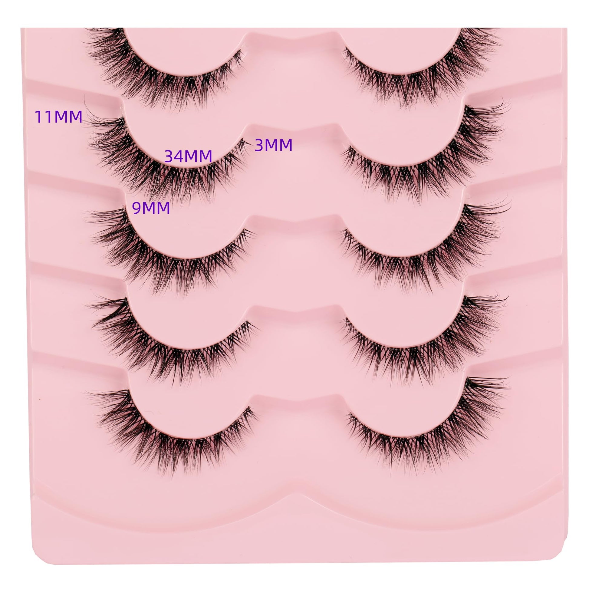 Details: Gmagictobo Natural Lashes Short Wispy Cat Eye False Eyelashes Clear Band Fake Eyelashes 7 Pairs