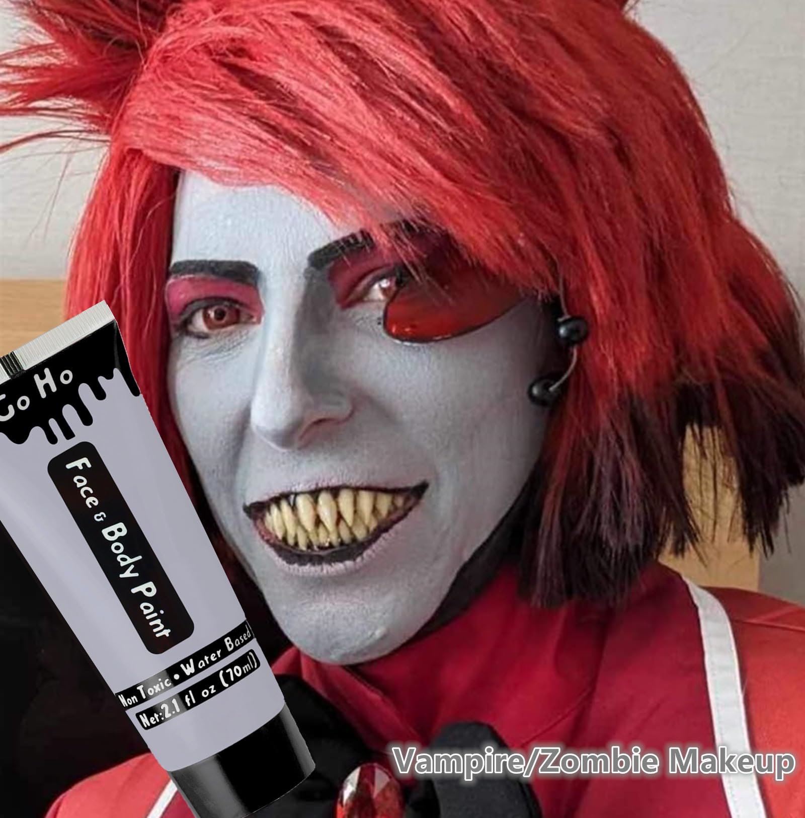 - 【 Grey Face Body Paint Washable】Grey Face Body Paint Washable for Halloween Vampire Zombie Makeup.Soft and moderate consistence.Nor too thick or too runny.Good coverage.Go on smooth.Easy to blend.Easy on and off.No cracks and flakes.No fading.No splotchy and patchy.No stains.