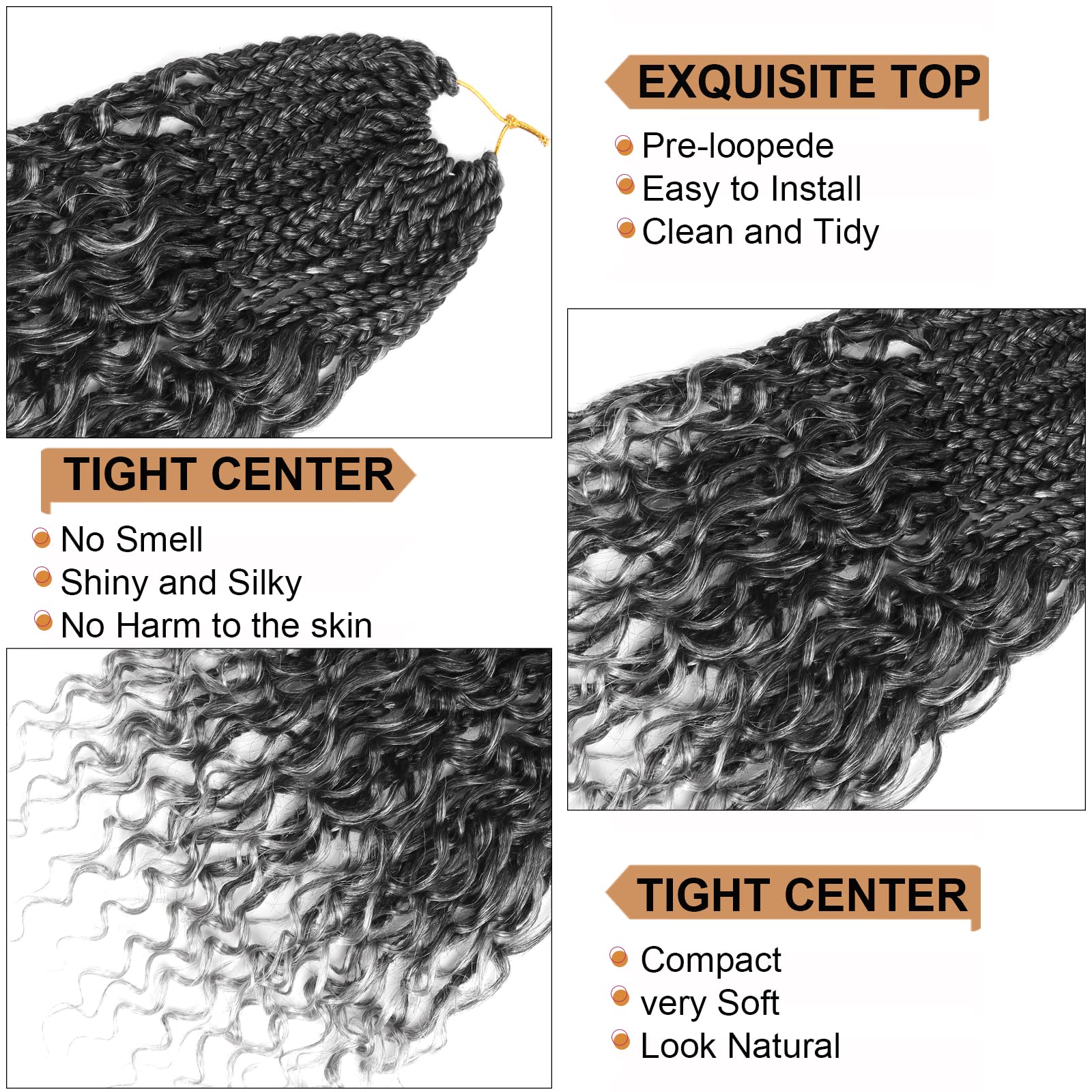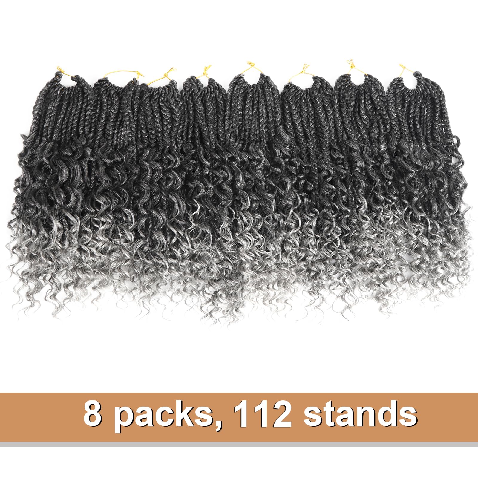 - 2.Crochet Braids With Curly Ends:8 Packs Goddess Box Braids Crochet Hair,Length:10Inch,Weight:40g,14roots/pack,Color:T-Grey.Box Braid Crochet Hair Made with High Quality Flame-Retardant Low Temperature Synthetic Fiber.
