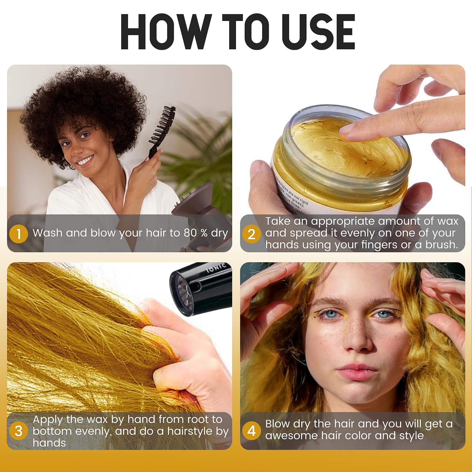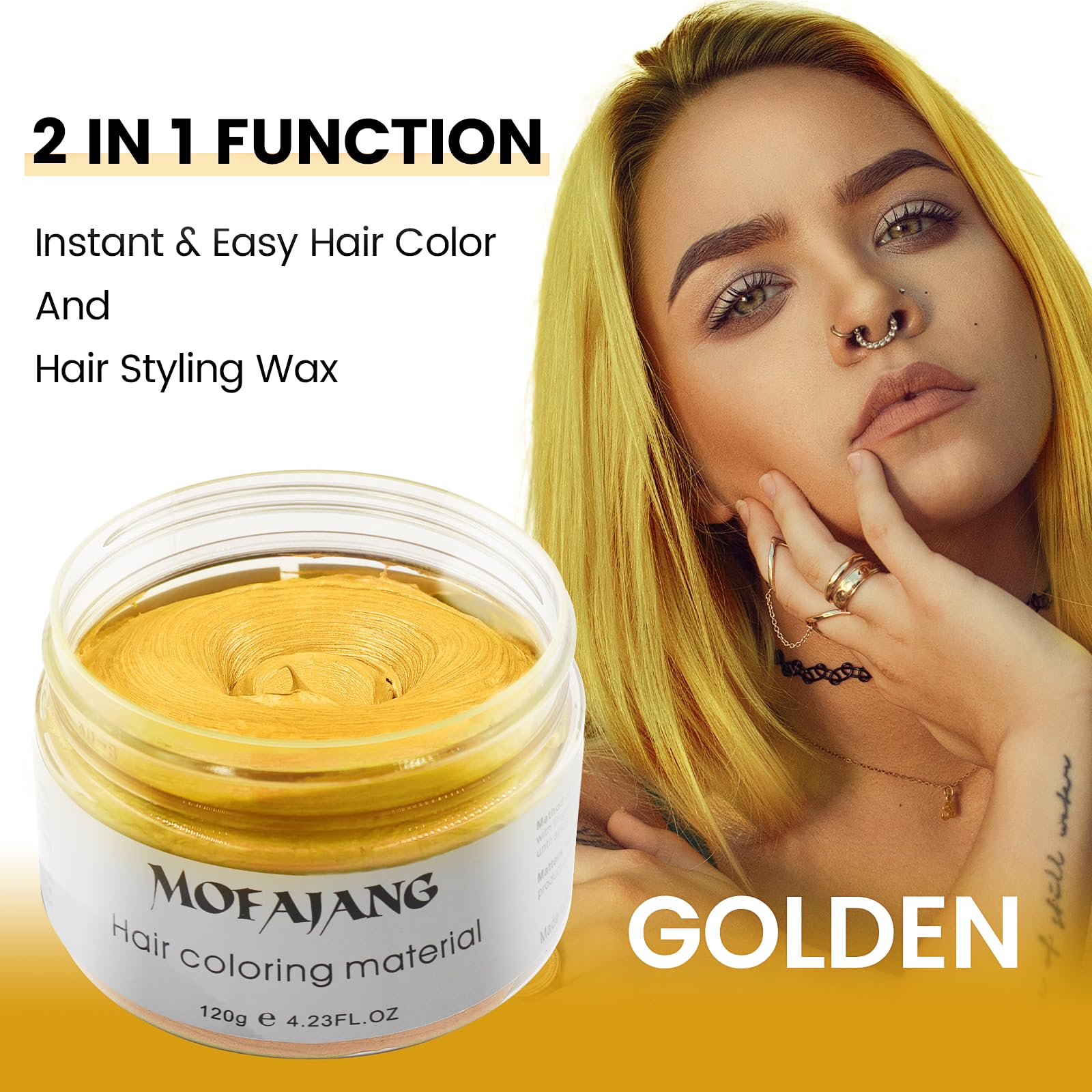 Gold Temporary Hair Dye Wax Natural Instant Hair Color Wax Pomades 4.23 oz, Hair Styling Clay for Party, Cosplay, Halloween, Christmas