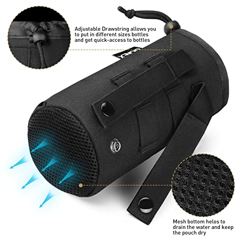Gonex Tactical Military MOLLE Water Bottle Pouch, Drawstring Open Top & Mesh Bottom Travel Water Bottle Bag Tactical Hydration Carrier Black