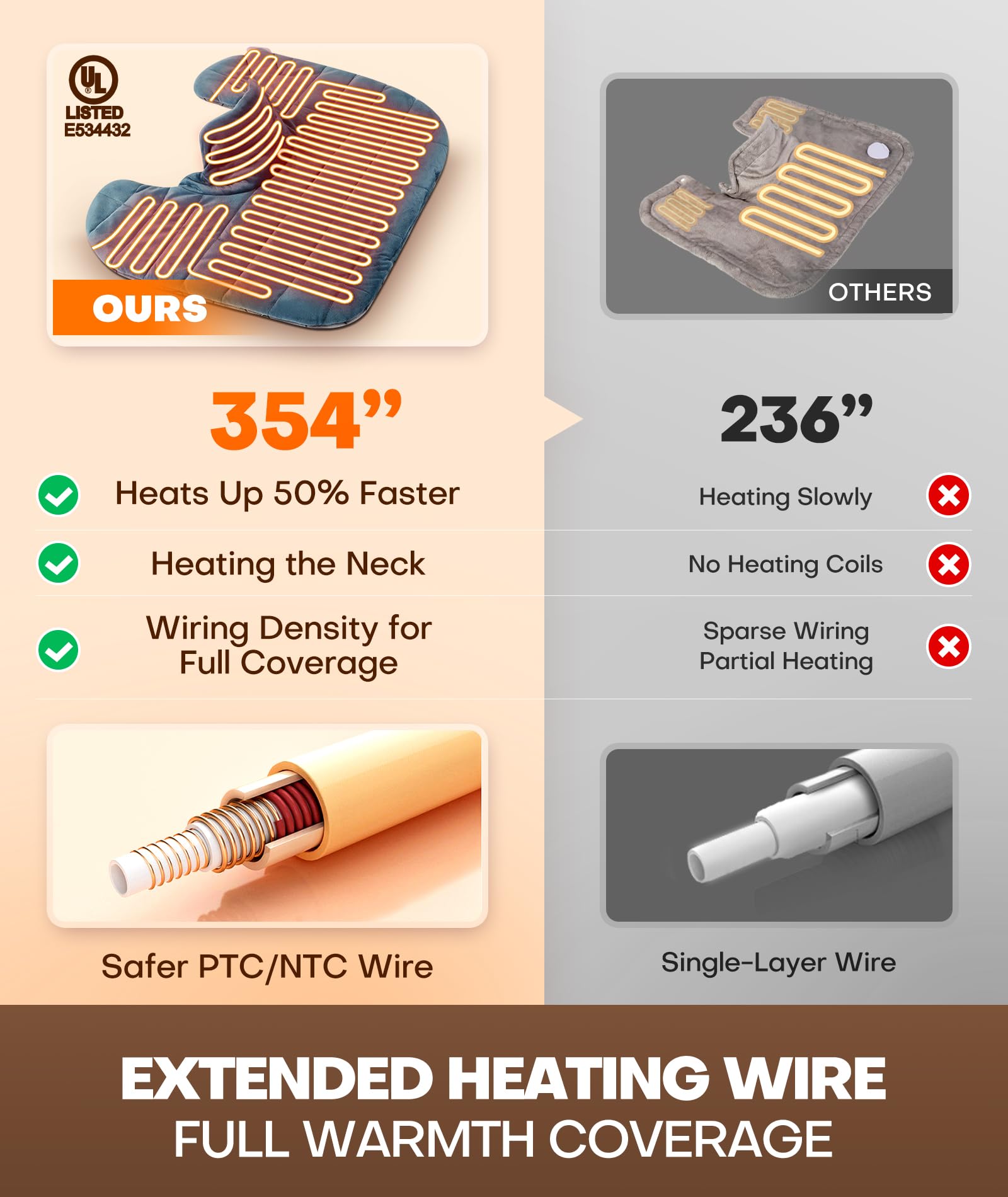 - ALL-NEW EXTENDED HEATING COIL DESIGN FOR 1 MIN HEAT-UP! Fed up with neck and shoulder pain? The perfect relief awaits! MISSVIVI heating pad features the latest patented design, with 150% longer heating coils for an enhanced experience. Feel the ultimate heating effect with 354' of ultra-long coils. Just wear the heating pad for one minute, and the steady warmth will penetrate your neck and shoulders, giving you the relaxation you’ve been longing for. Long-term use effectively relieves pain.