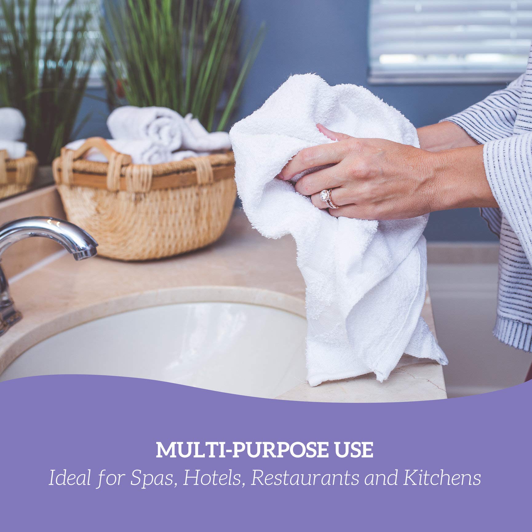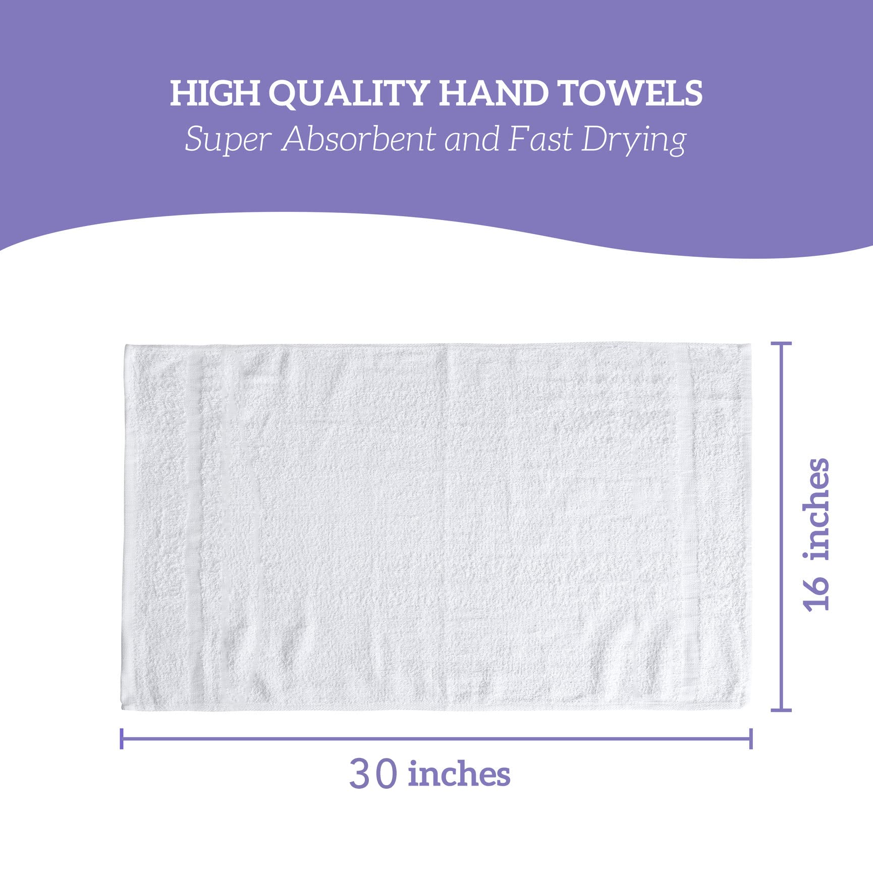 - Set includes 120 highly absorbent and durable handtowels in white measuring 16 by 30 inches.These hand towels are great for your hands and face and great for just about anything
