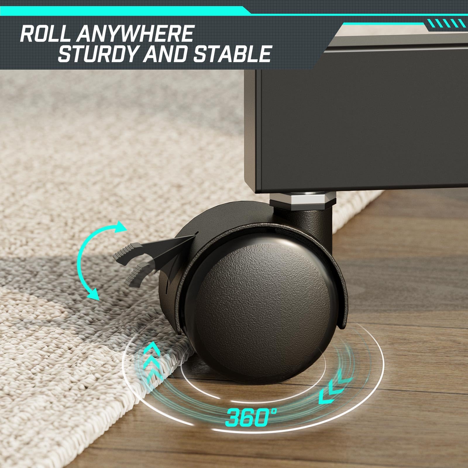 - Movable Tall TV Stand: The base features 4 wheels providing smooth mobility on both hardwood and carpet floors. All wheels are easily locked to ensure safety, and the wheels made of high-quality PU materials will not make loud noises