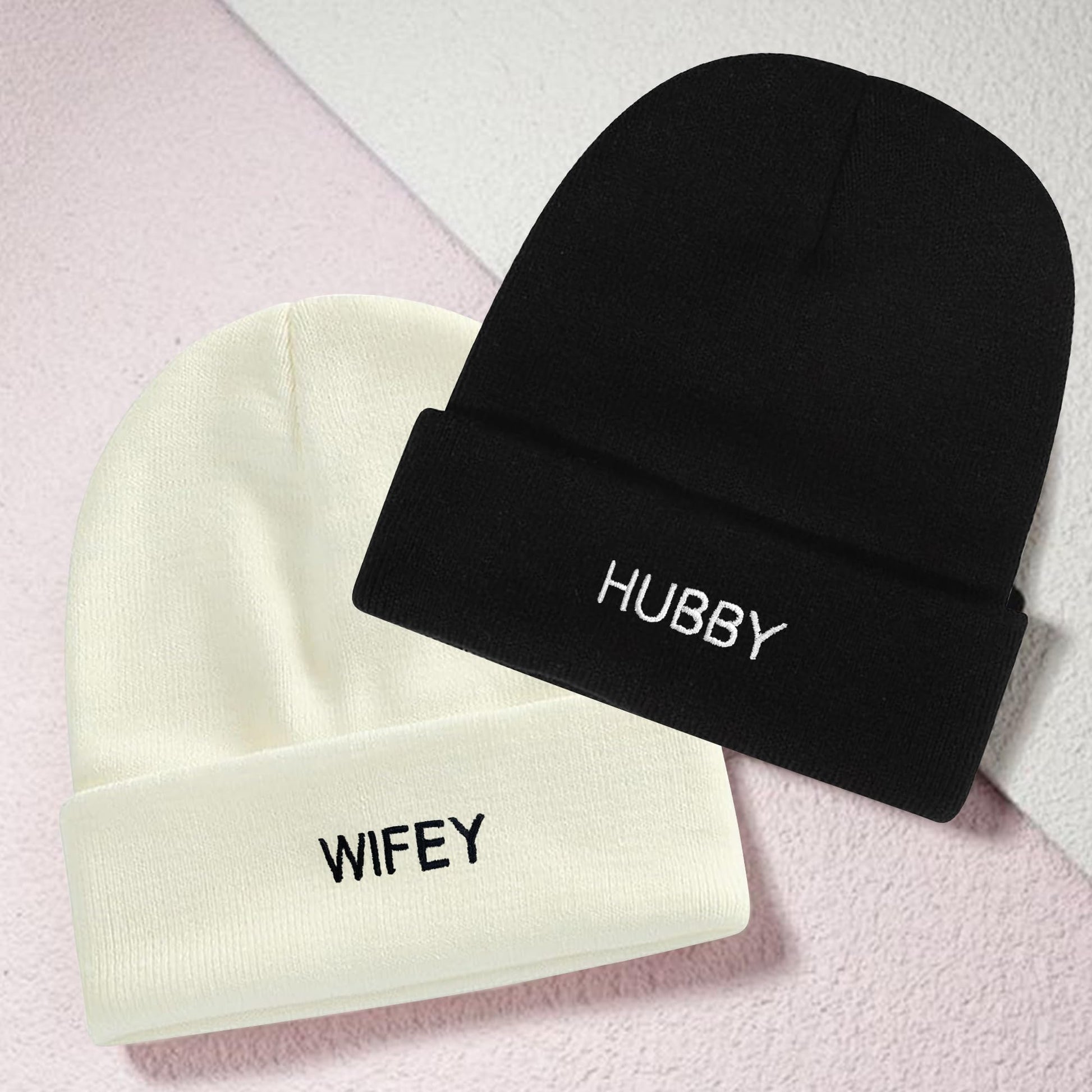 GroomBrideGifts Wedding Gifts for Couples, Hubby & Wifey Wedding Beanie Hat Set, Bridal Shower Gifts, Unique Gift for Engagement, Wedding, Honeymoon, Newly-Married Anniversary