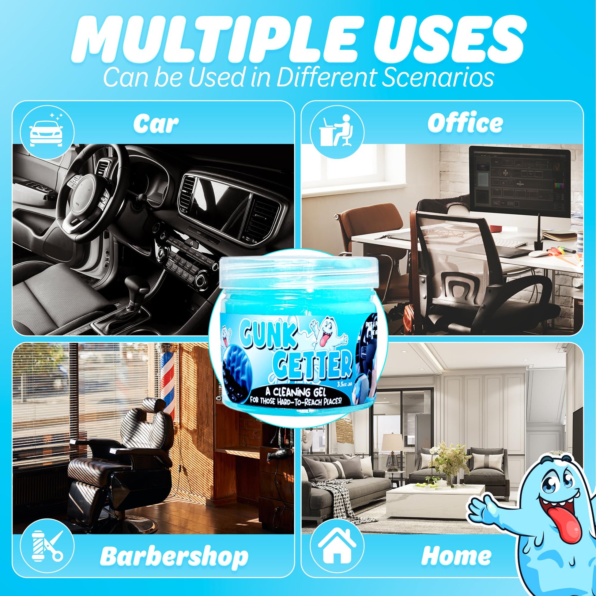 - EASY TO USE: Cleaning your car has never been easier with Gunk Getter’s cleaning gel. Simply press the gel into small cracks, crevices, or onto flat surfaces, and watch as it effortlessly picks up dust, crumbs, and debris. This car cleaning putty adapts to any surface and makes cleaning quick and stress-free. Whether you’re detailing your car or sprucing up your office keyboard, this gel delivers professional-grade results in just seconds. (Note: For best performance, do not rinse with water.)