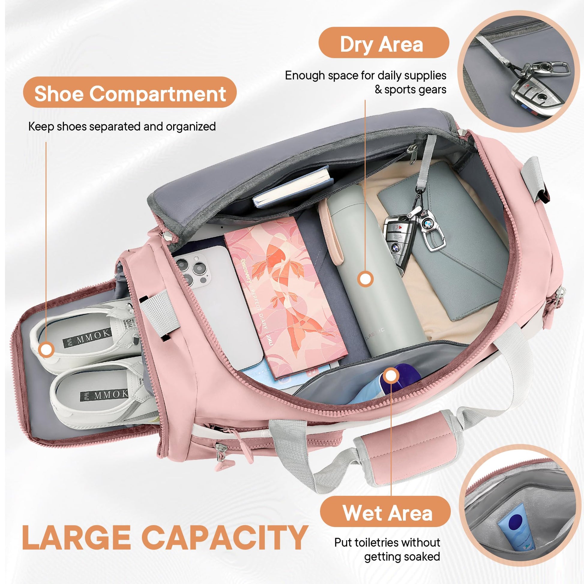 - 【WET/DRY SEPARATION】:The Wet proof pocket inside this overnight weekender bag provides a safe space for storing wet towel, toiletries, or basic swim gear without getting other items damp