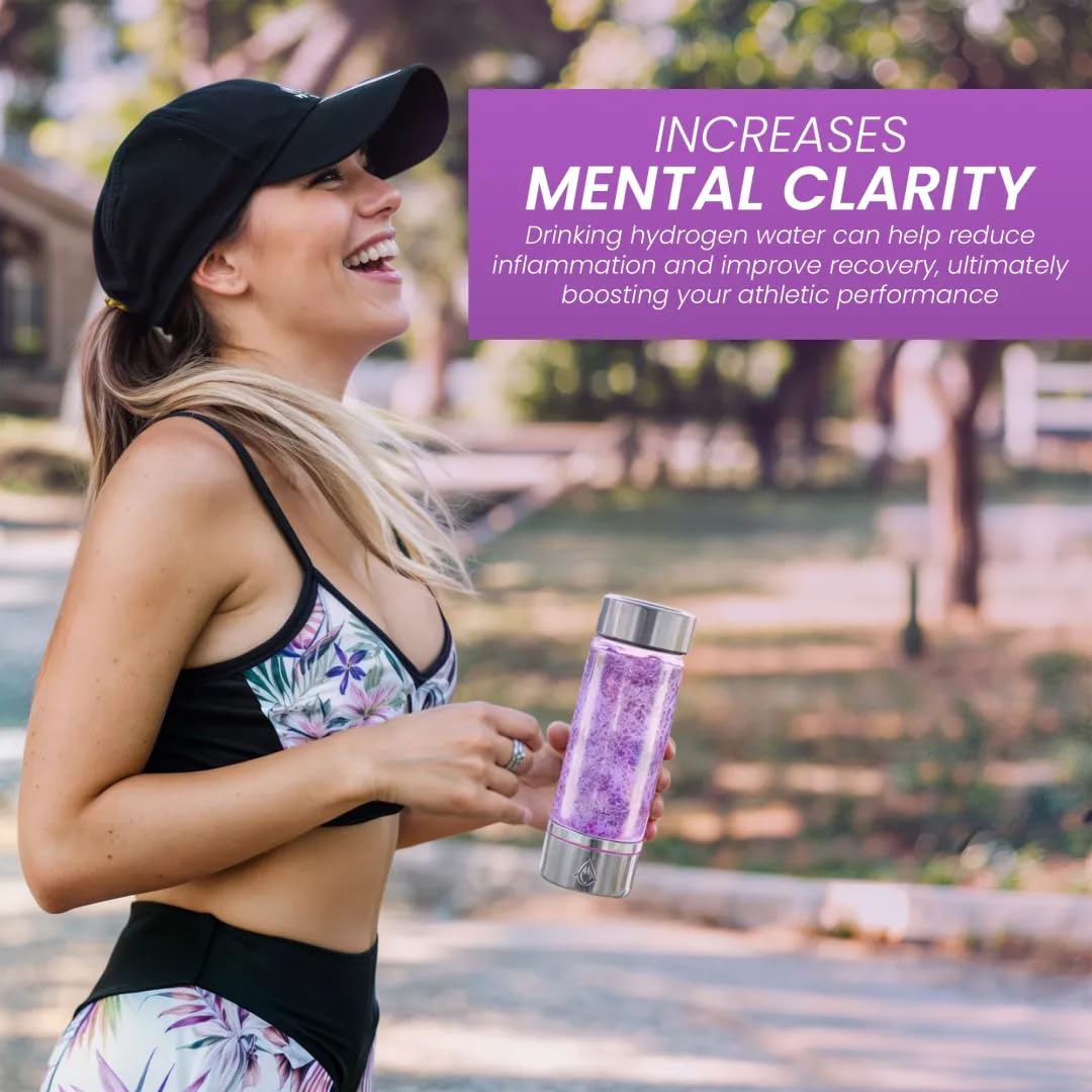 H3O Hydrogen Water Bottle - Hydrogen-Infused Water Machine with Built-in Purple Protective Light - Portable Water Ionizer for Hydration, Energy, Sleep Quality - 3000PPB Hydrogen Ions per Cycle