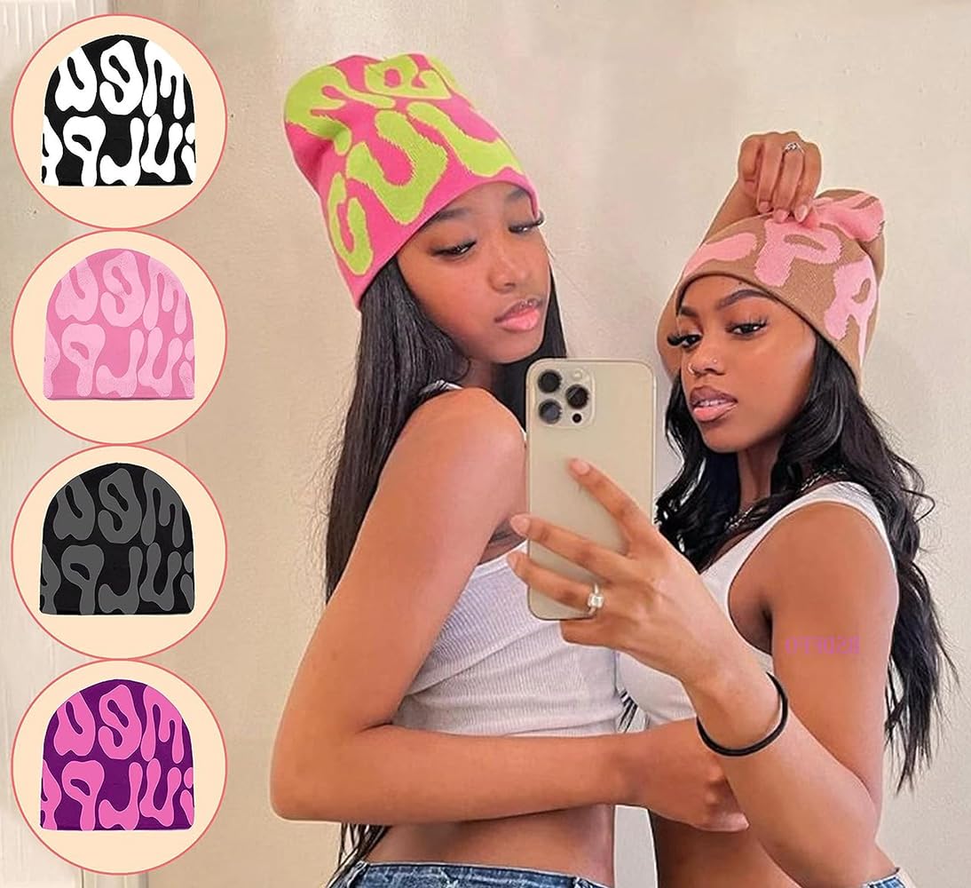 HAILTH Y2K Women's Beanies Wool Acrylic Knitted Hat Women Hats Beanie Wireless Winter Knit Hat Warm Knitted Cap Casual Skullies Outdoor Redwhite