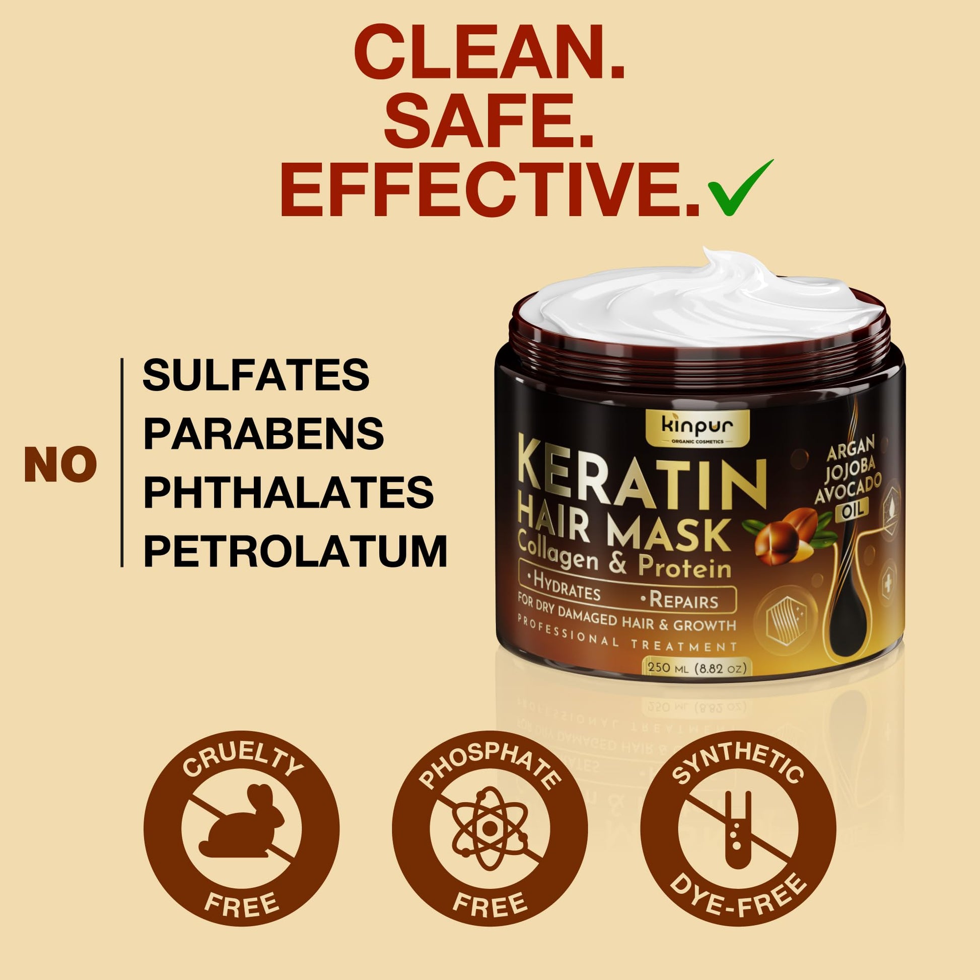 Hair Mask for Damaged Hair – Keratin Treatment for Hair Growth & Hydration – Deep Conditioning Collagen Mask with Protein, Coconut, Jojoba & Avocado Oil – Split Ends Repair & Color-Safe