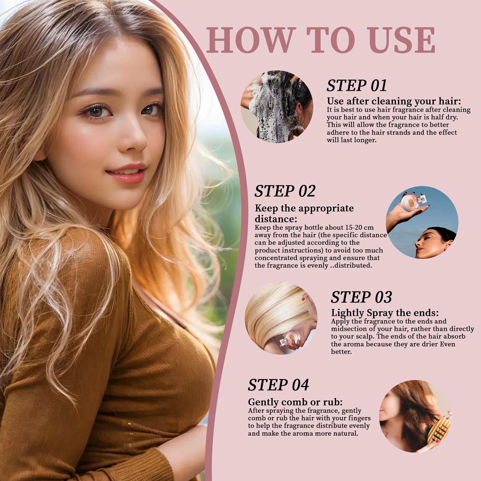 - Safe & Non-Irritating: Formulated with gentle, natural extracts, this hair perfume is free from preservatives and dyes, making it safe for your scalp and hair, while providing a refreshing, non-irritating experience.