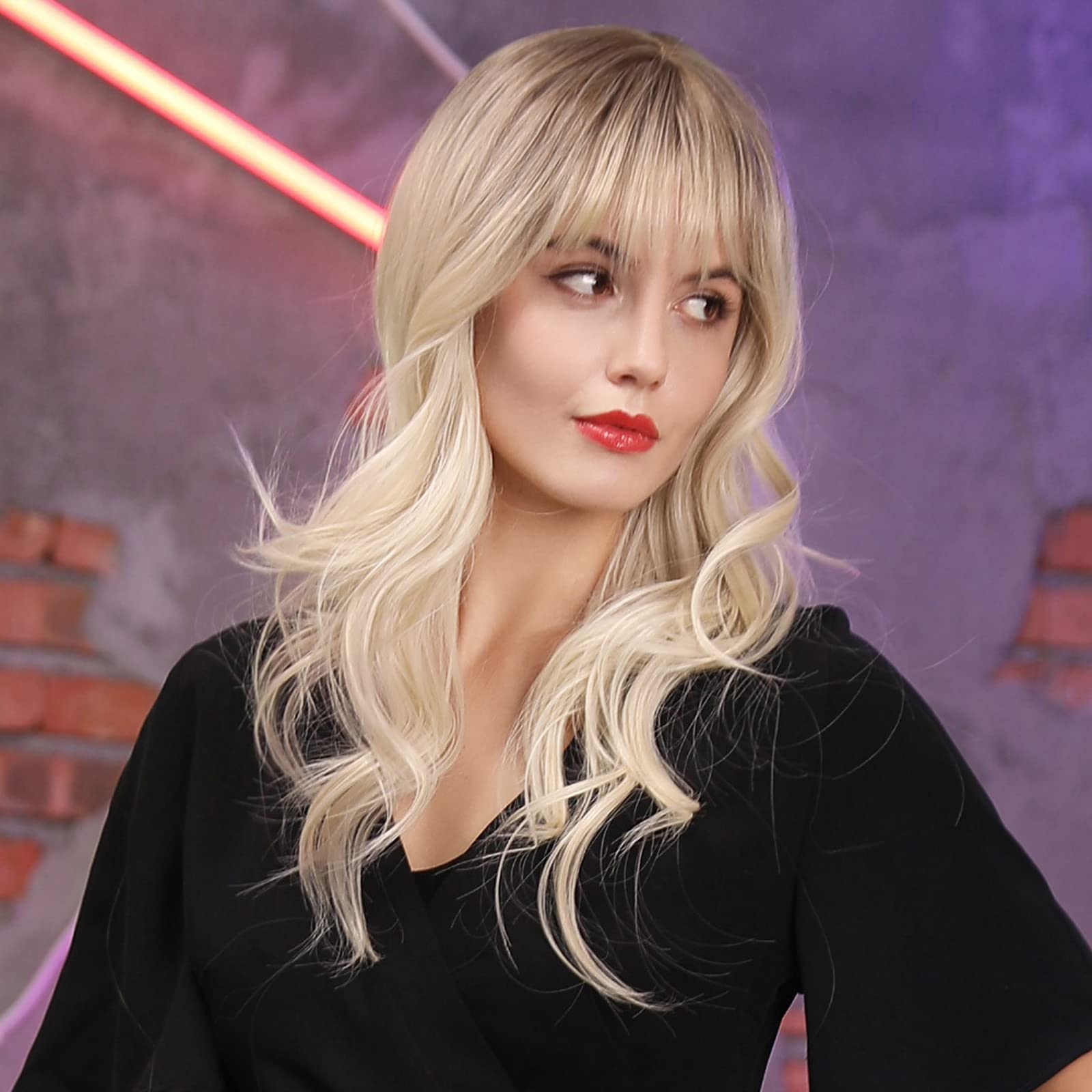 HAIRCUBE Platinum Blonde Wigs for Women Long wave Wigs with Bangs Heat Resistant Fiber Synthetic Wigs