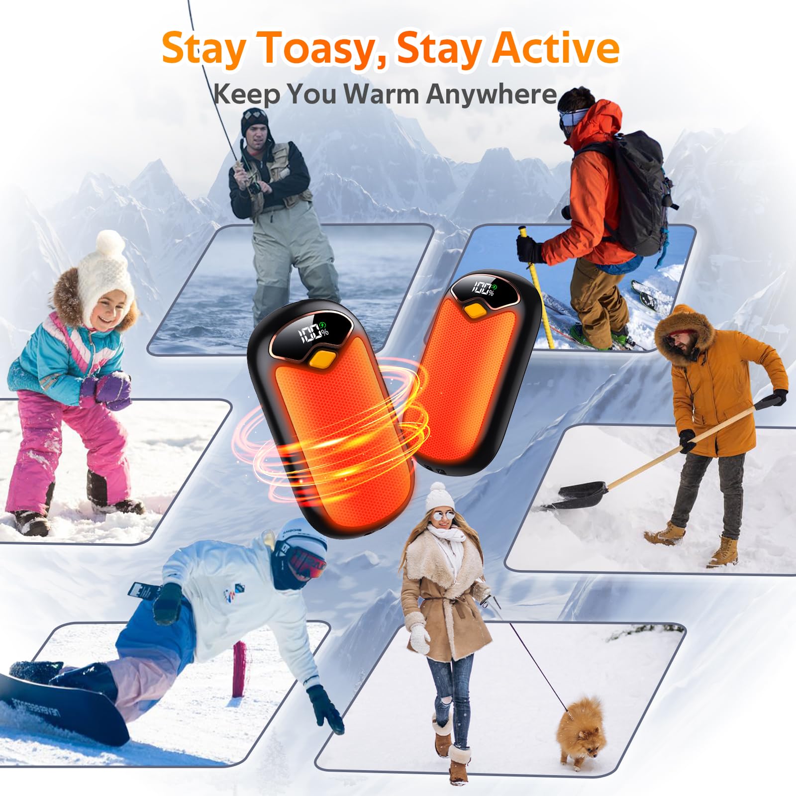 - 【Rechargeable Hand Warmers with LED Display】Our electric hand warmer features a clear display screen that shows the remaining battery and current temperature settings, allowing you to easily adjust the electric hand warmers rechargeable to your desired heating level by one-button control and giving you a clear indication of when to recharge it.