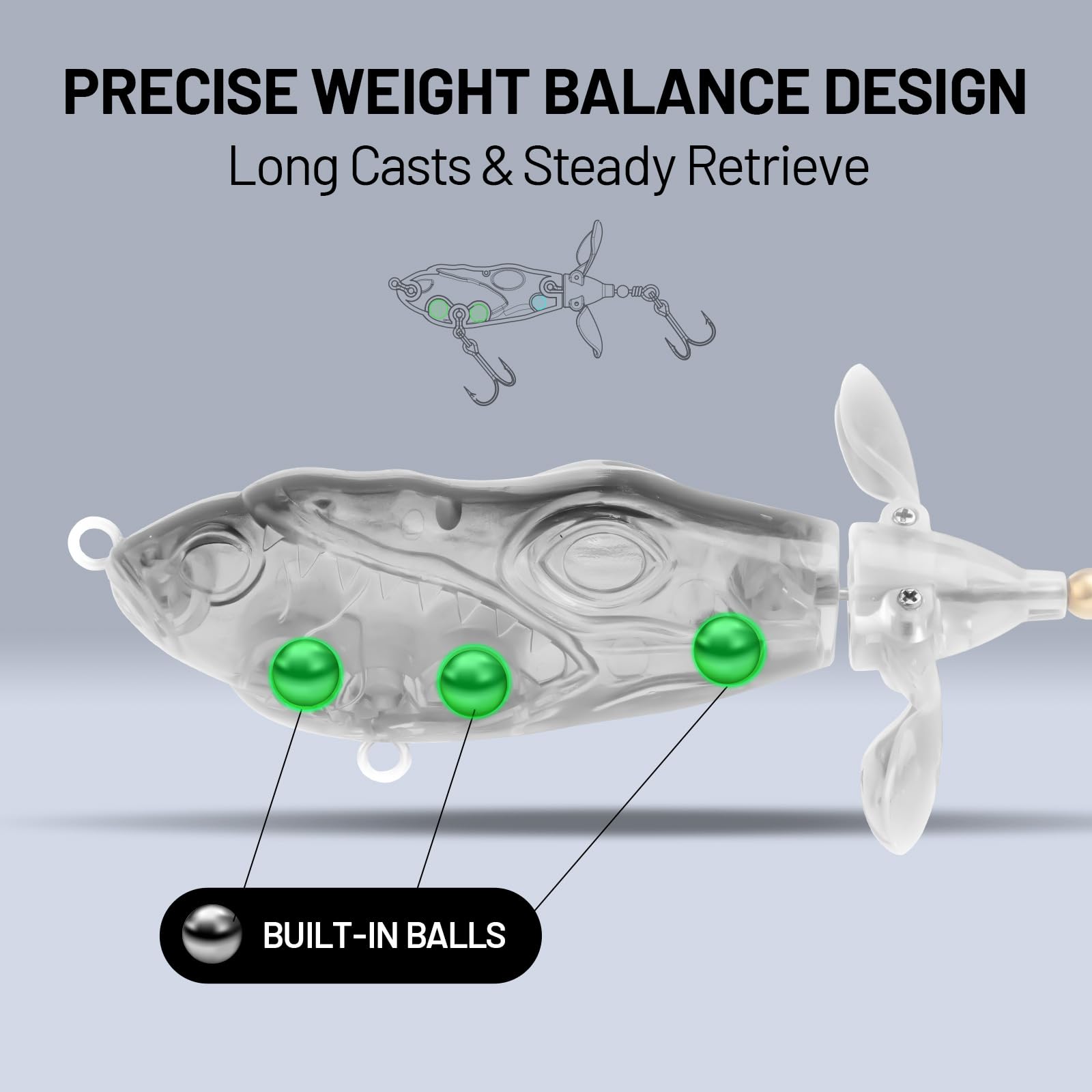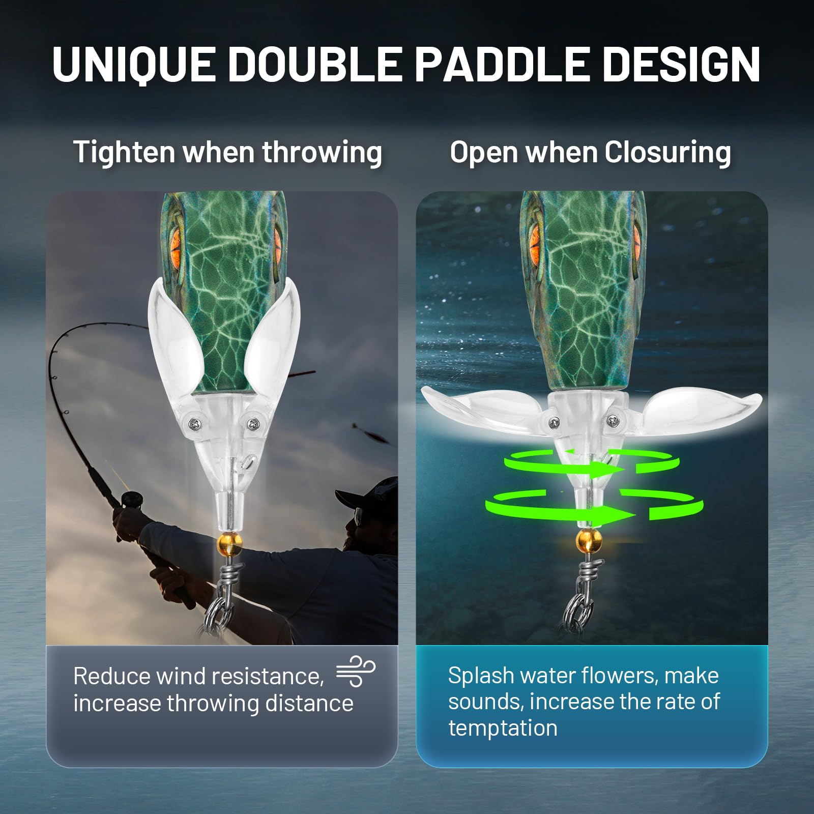 - Double Prop Tail Design: Built with super durable double propeller tail, the HANDING M1 plopper fishing bait produces an enticing plopping sound and a generous amount of spray that calls fish to the surface to strike.