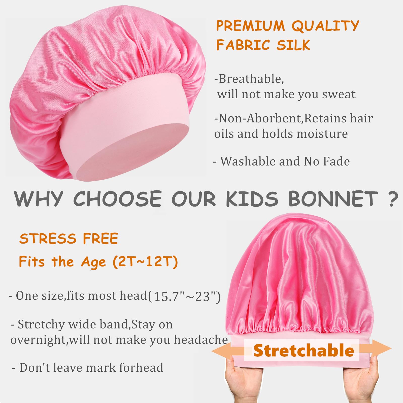 - More Bonnet Time Can Be Found in Daily Life: Bonnet is not only used for sleeping,it can also wear it in other time like face clean,brush teeth,take a bath,coloring books or drawings.We offer various attractive colors, which can meet for both girls and boys