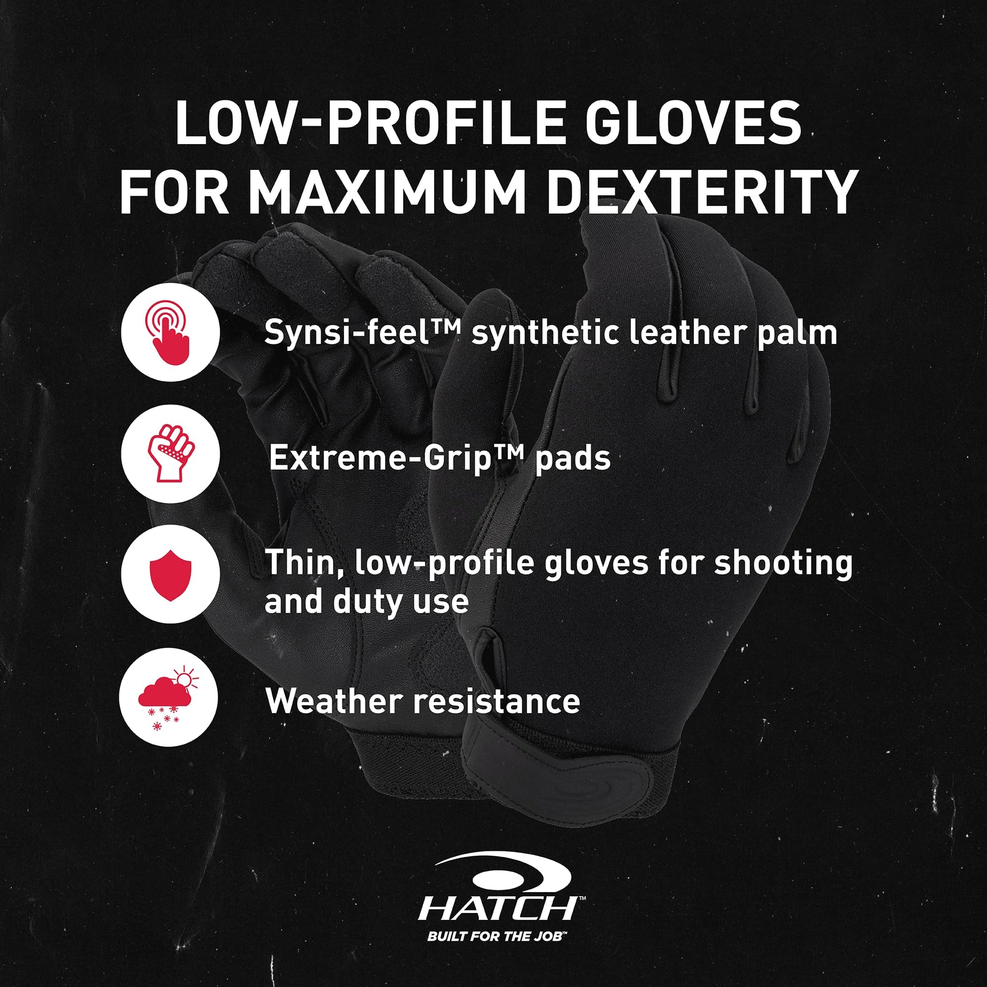 - Thin, low-profile gloves for shooting and duty use