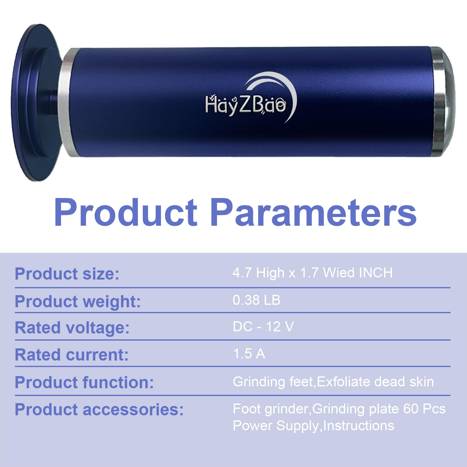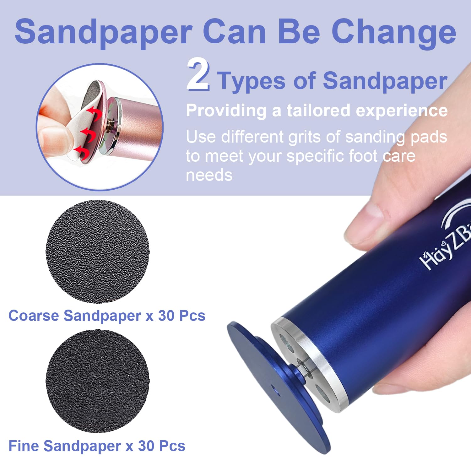 HayZBao Electric Foot File - High Torque,Callus Remover for Feet,Adjustable Speed Foot File with 60 Pcs Sandpaper Discs,Professional Pedicure Tool for Dead Skin and Calluses (Blue)