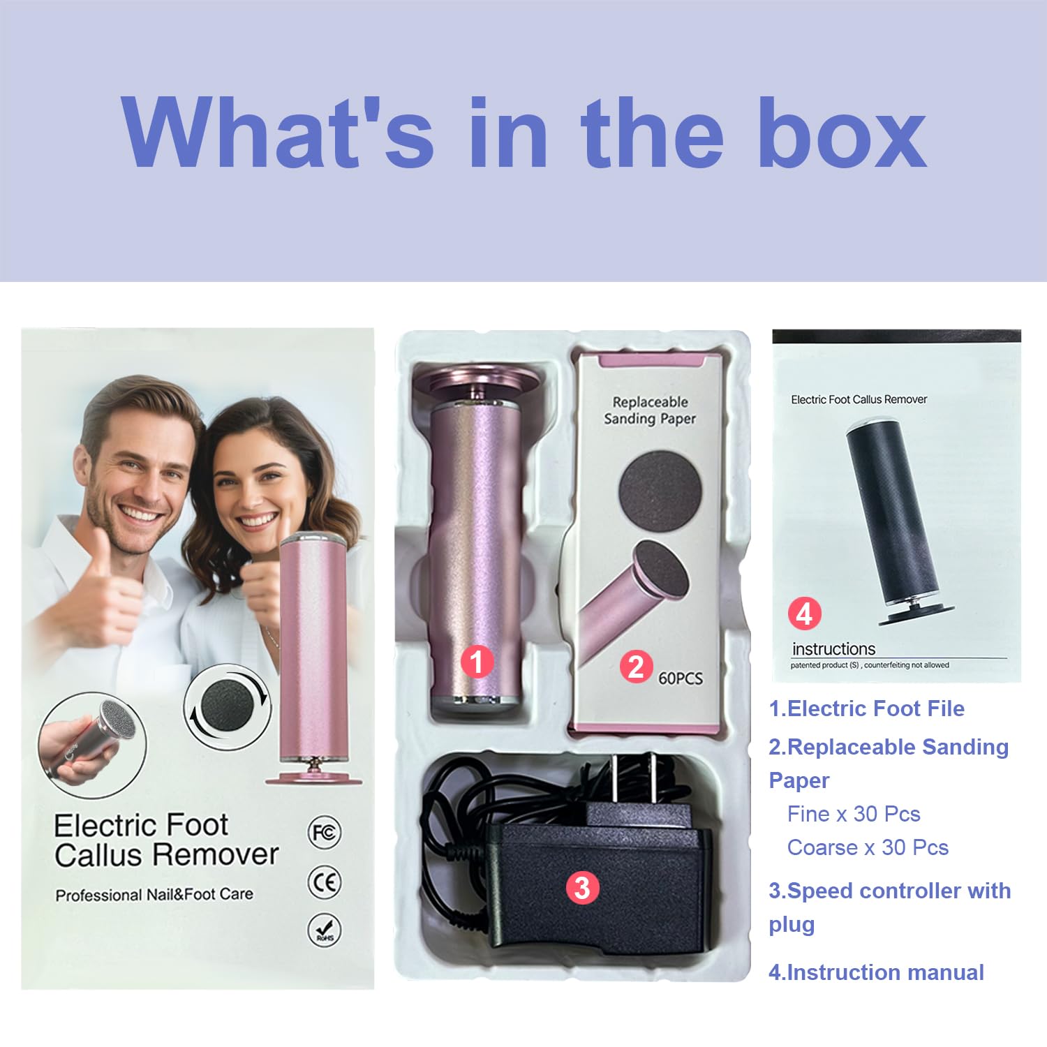 - 60 PCS Replacement Sandpapers: Comes with 60 Pcs Sandpaper.Easy to apply and remove,clean and hygienic,making foot maintenance more convenient and effective.