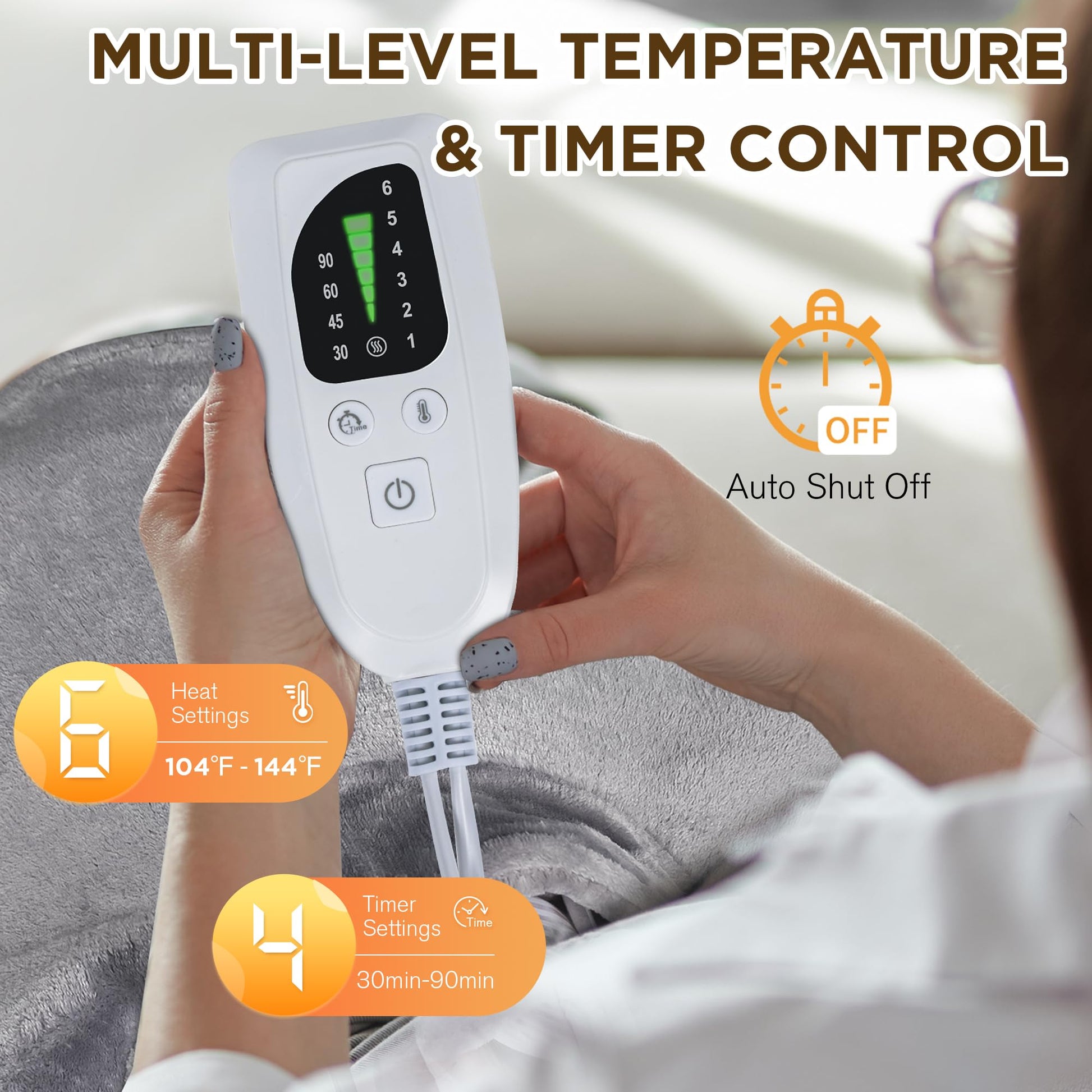 - 6 HEATING LEVEL & 4 TIMER SETTING:Fast heated technology for rapid warming in seconds, Heating pads temperature range of 104°F to 140°F (40°C to 60°C), it‘s also has 4 timers (30, 45, 60, 90 minutes), Choose the temperature and time according to your preference and enjoy the perfect heat therapy experience, Heating pads with automatic shut-off protection and 4 time settings ensure a safe & peaceful rest