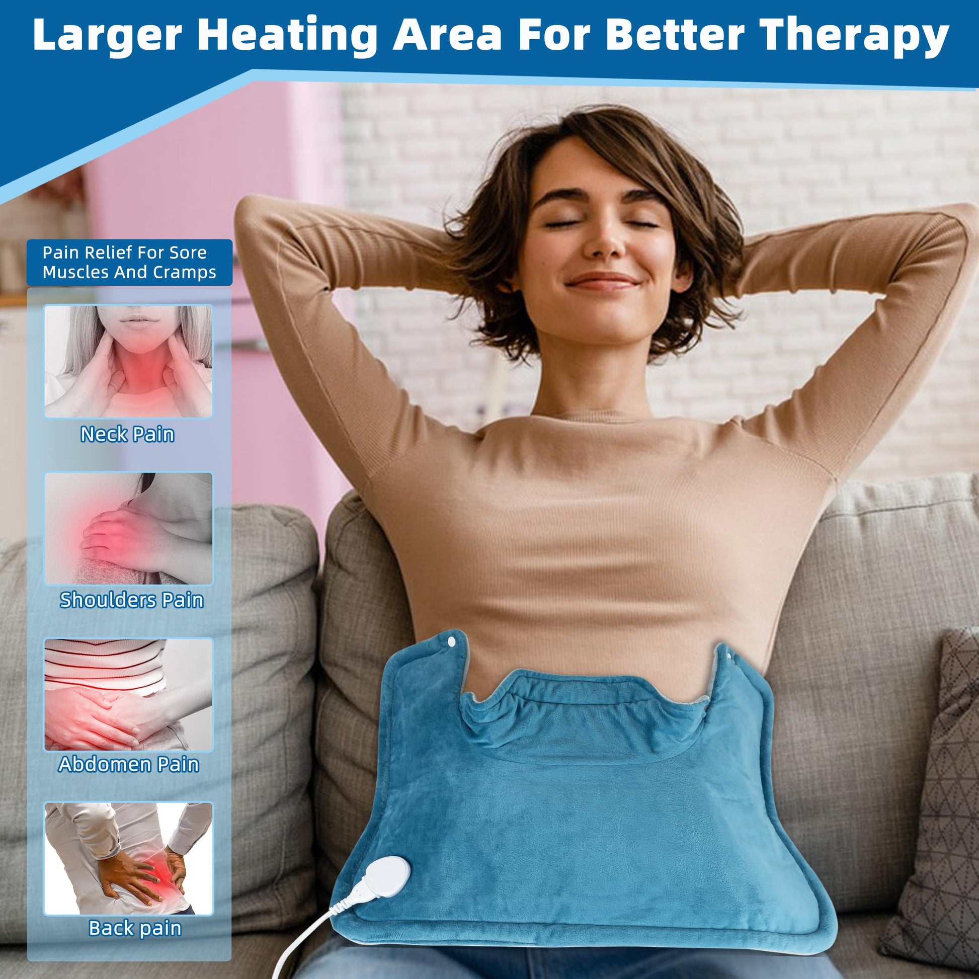 - 【Extra Long Cord Easy To Use】:This electric neck heating pad has a 7-foot power cord, which is very easy to use. You can relax in bed, on the sofa, or on your favorite chair, easily adjusting your position and placing the heat pad. For your safety, our heating pad includes an over-heating protection technology, promising a smooth and safe therapy session for neck and shoulder pain relief.
