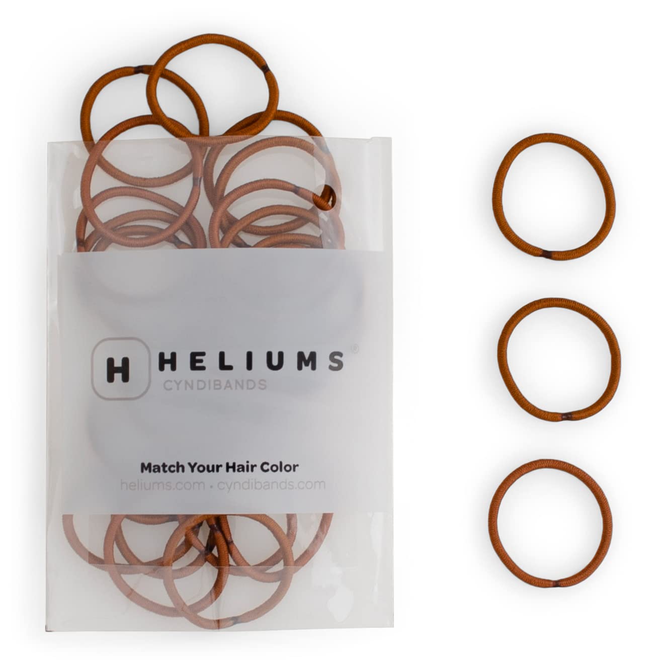 Heliums Small Hair Ties - Copper - No Damage Mini 1 Inch Reusable 2mm Elastics for Thin Hair and Kids, Neutral Ponytail Holders - 48 Count